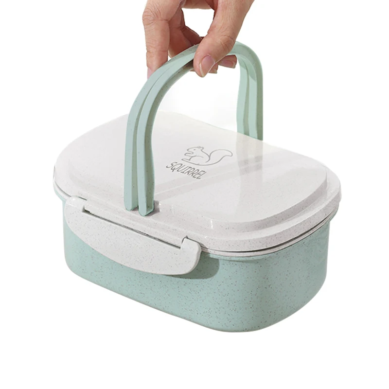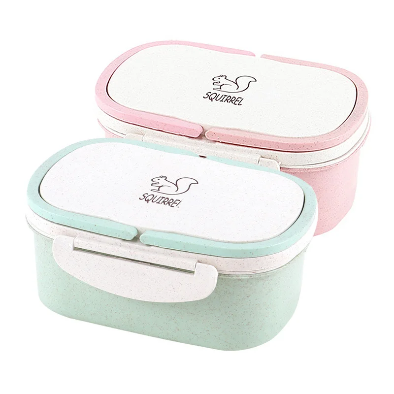 LAMPMELY, двухслойный Ланч-бокс из пшеничной соломы, мультяшный, для студентов, для детей, контейнер для микроволновой печи, контейнер для хранения посуды, 950 мл