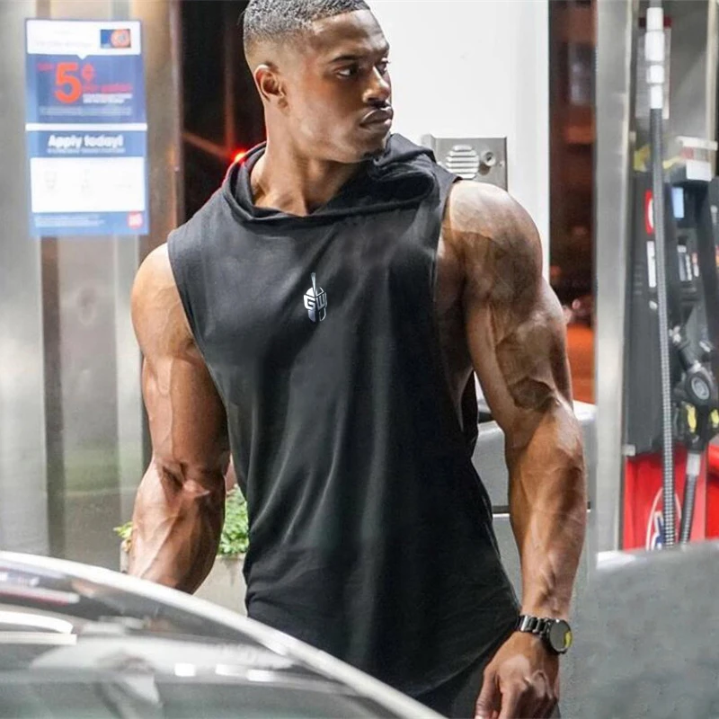 Мужская хлопковая майка для фитнеса, с капюшоном, для занятий спортом