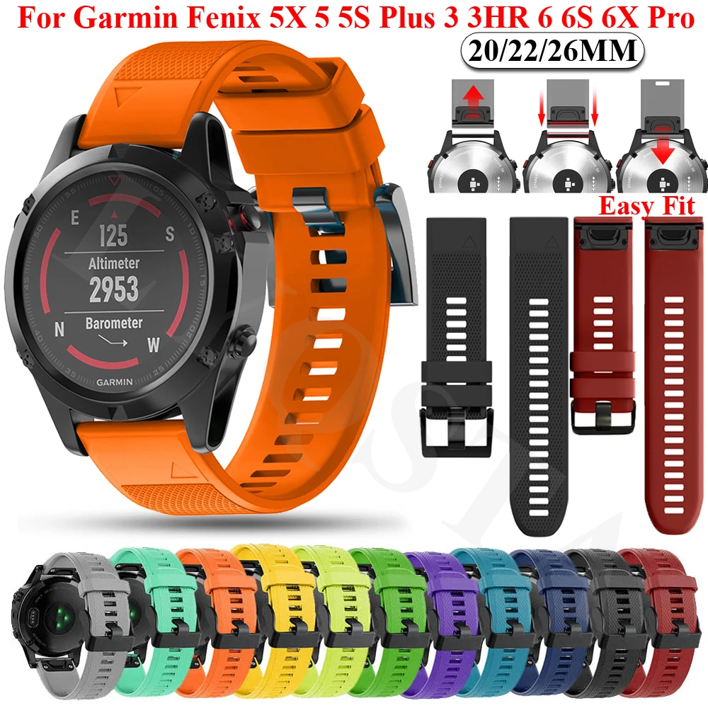 Горячее предложение 26 22 20 мм ремешок для часов для Garmin Fenix 5X 5 5S Plus 3 3HR 6 6S 6X Pro часы быстросъемные силиконовые легко подходят для наручных ремешков