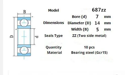 Подшипник из нержавеющей стали S687ZZ, 10 шт., 7*14*5 (мм), бесплатная доставка, высокоскоростные металлические герметичные детали механического оборудования с защитой от ржавчины