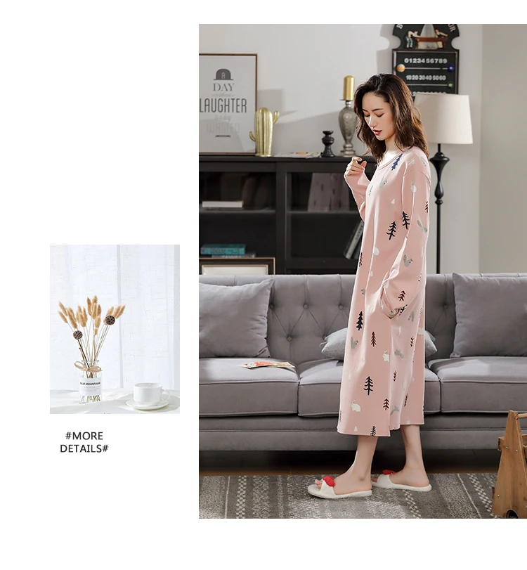 Ночные рубашки женские большого размера 3XL с принтом и круглым вырезом средней длины свободные простые мягкие дышащие пижамы в Корейском стиле Женская шикарная пижама с длинным рукавом