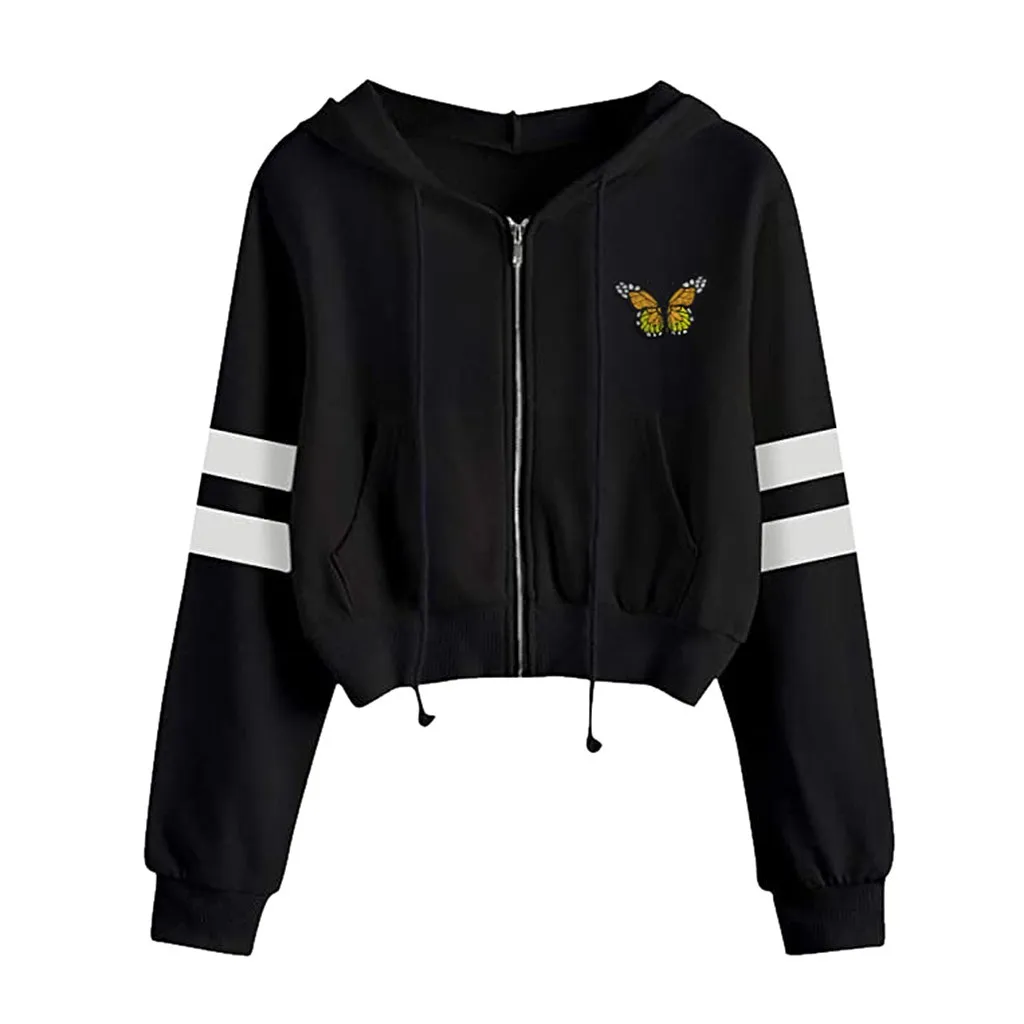 Повседневные женские толстовки на молнии с принтом, однотонная Толстовка с длинным рукавом, пуловер с капюшоном, топы, уличная одежда, Толстовки, Толстовки с капюшоном