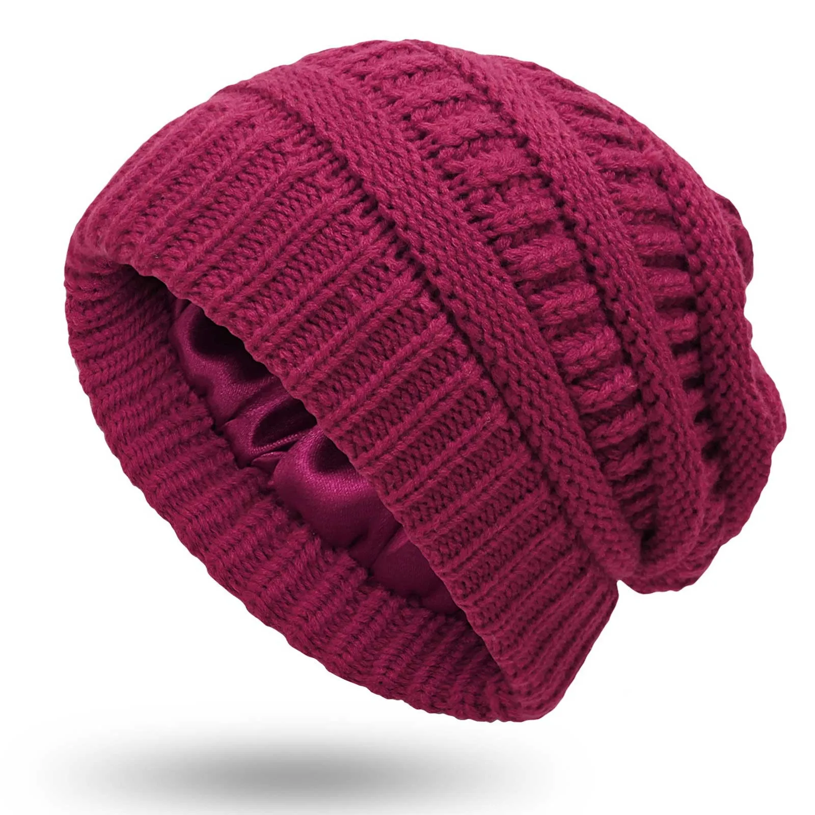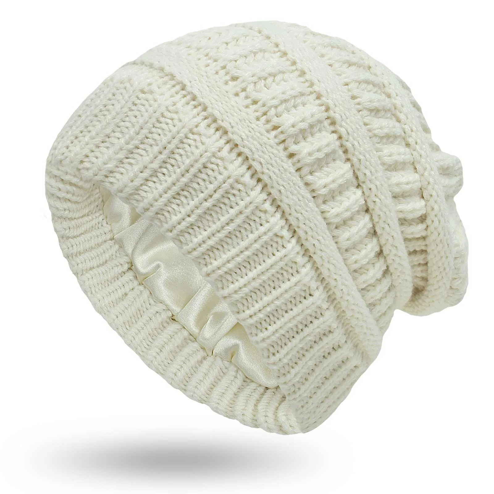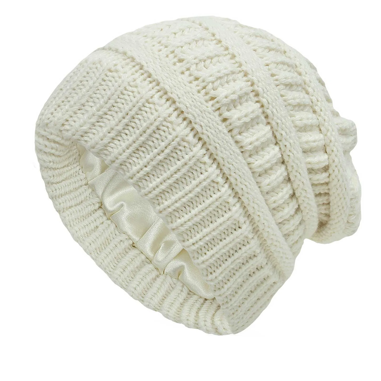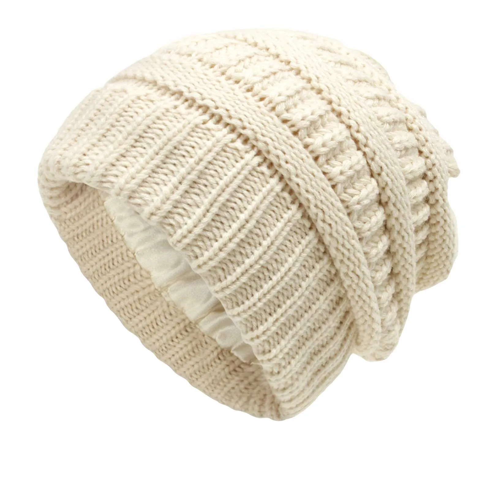 Женская вязаная мешковатая шапка, зимняя теплая шелковая атласная п...