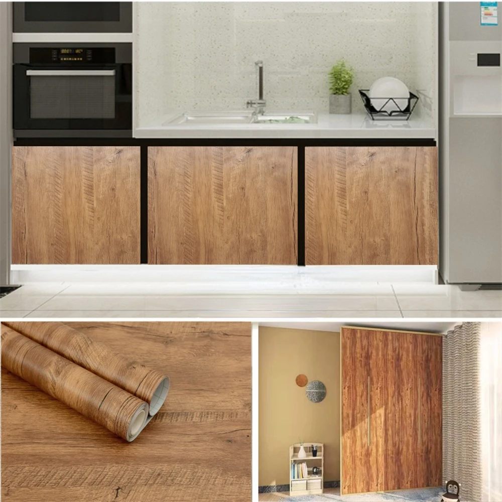 Обои водостойкие самоклеящиеся под дерево, пленка для мебели, кухни, кабинета, спальни, гардероба, декоративные наклейки для обновления рабочего стола