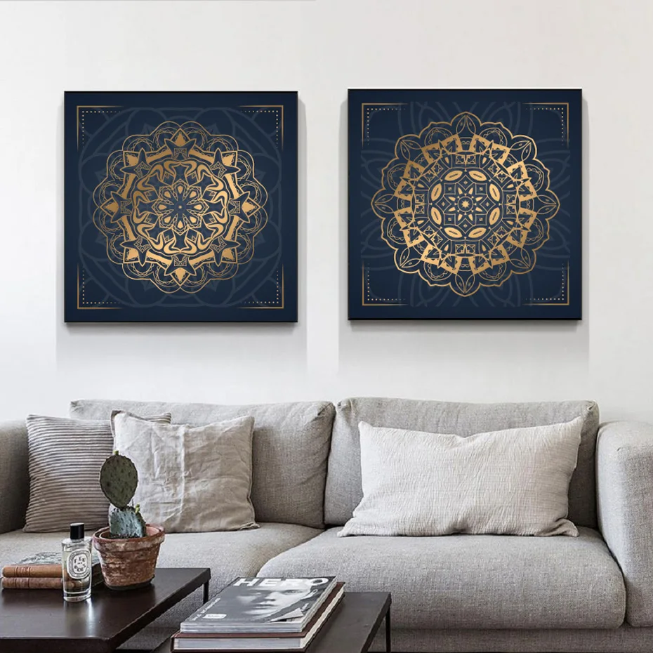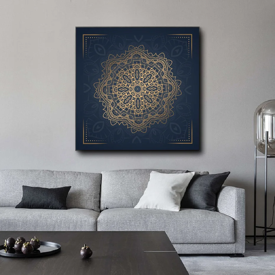 Постер в скандинавском ретро стиле с изображением мандалы на холсте с золотым рисунком круглые настенные украшения для спальни гостиной дома