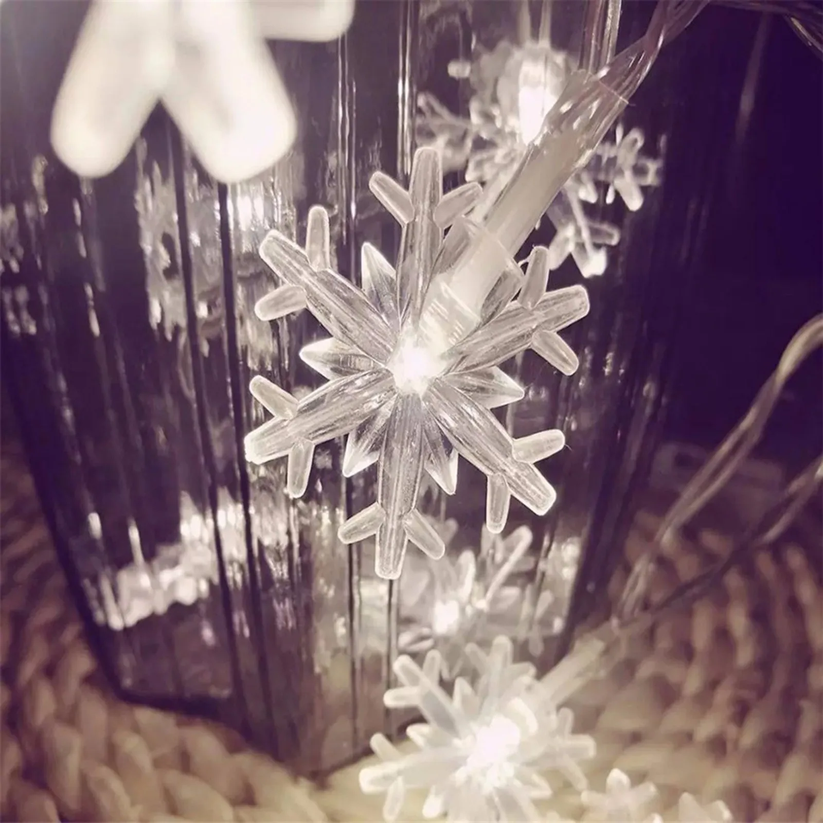 Материал-изготовлен из эпоксидной смолы. Каждый светильник со снежинками запекается при высокой температуре, что делает снежинку высокой твердостью. Светильник со снежинками прочный и безопасный. Энергия энергосберегающая и низкое потребление. Вы можете декор и повесить в любом месте с батареей вместо вилки.