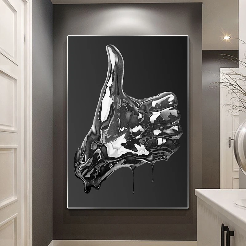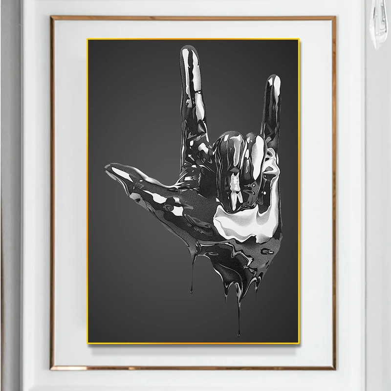 Абстрактный жест Серебряная скульптура холст картина, печатный плак...