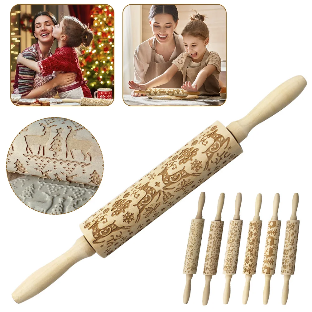 * 3. Рождественские Мультяшные узоры выгравированы на наших роликовых заколках, чтобы добавить персонажа ко всем вашим хлебобулочным изделиям!