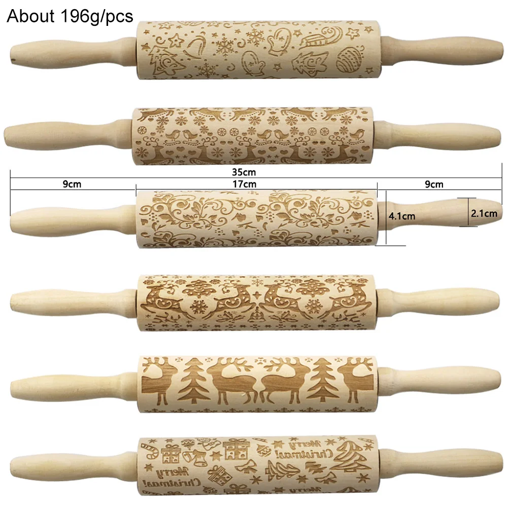 Оптовые продажи, Рождественский штифт для тиснения с узором, выгравированный штифт для прокатки, натуральный деревянный штифт для тиснения, Прямая поставка