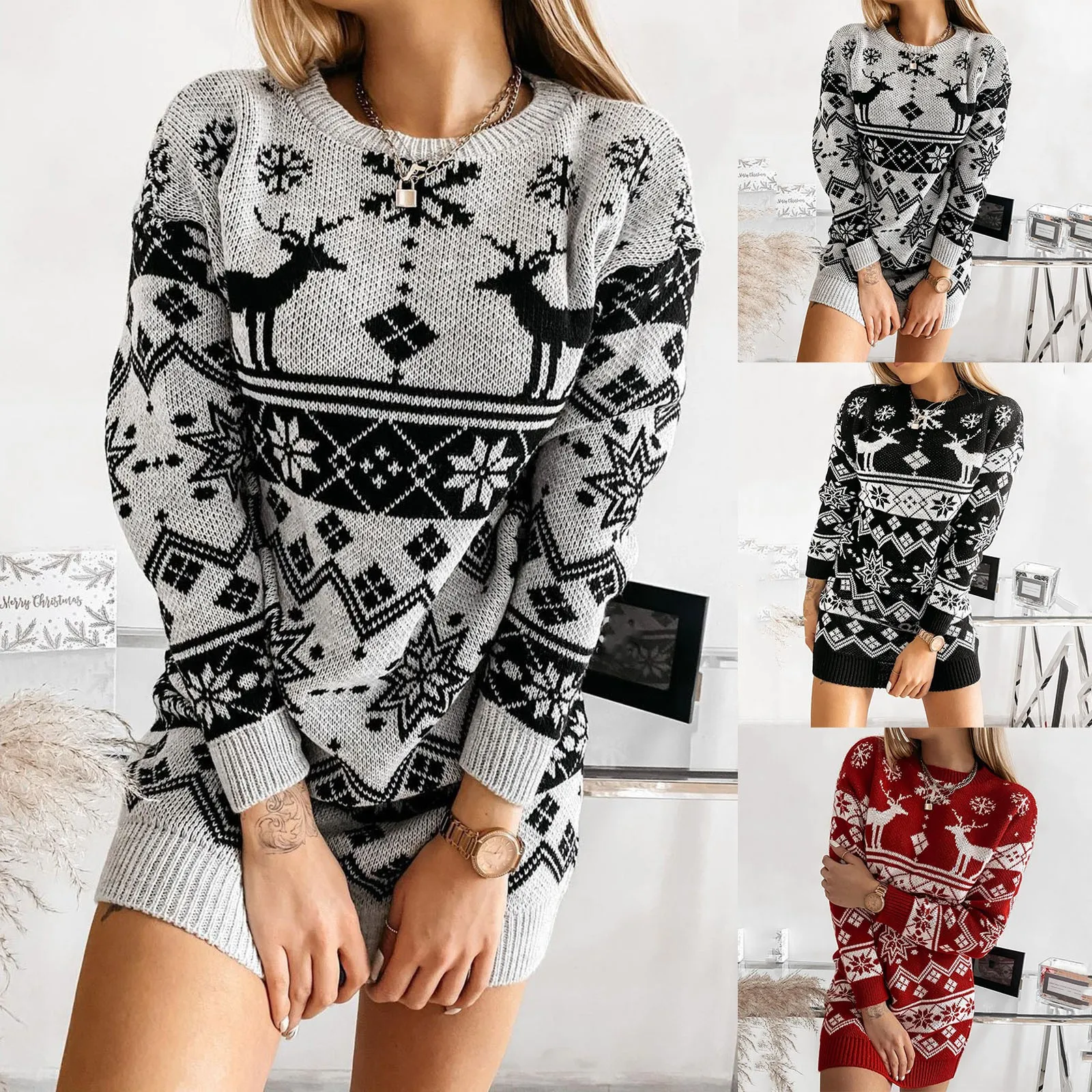 Женское рождественское платье-свитер, модные осенне-зимние платья с...