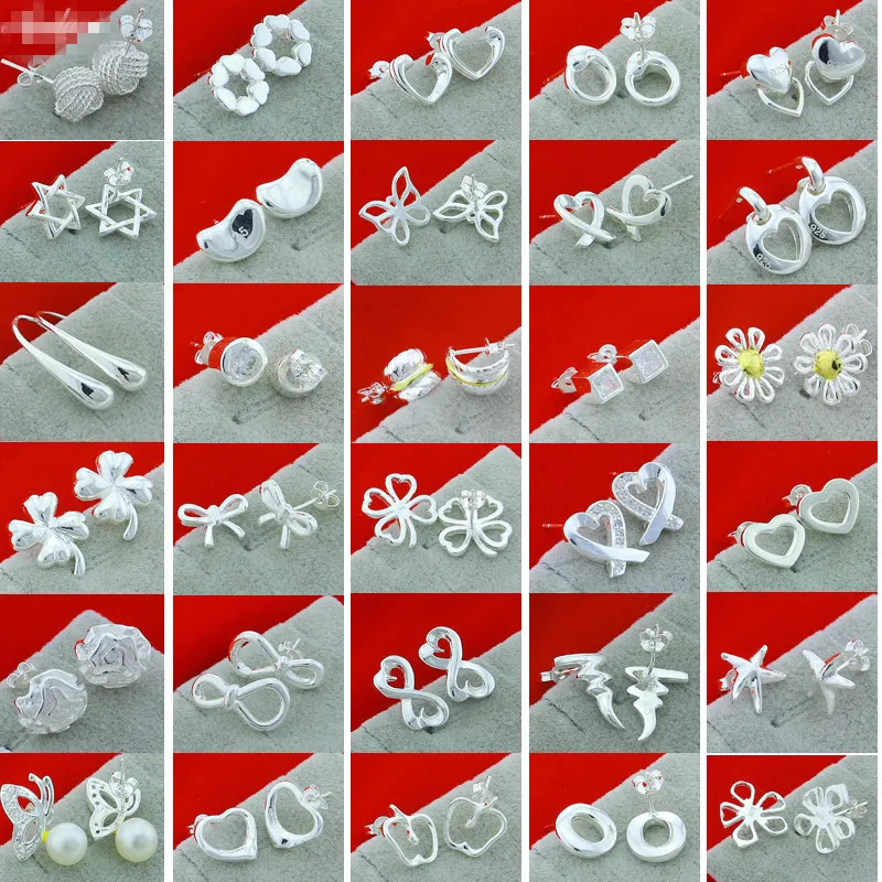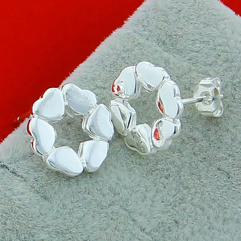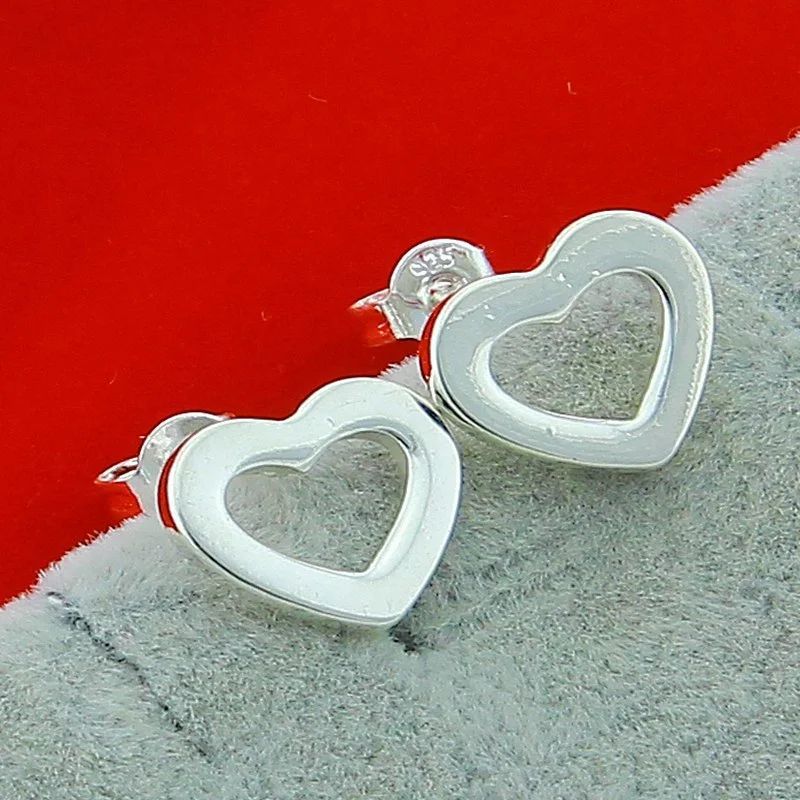 Женские серьги-гвоздики с сердечками, серебро 925 пробы