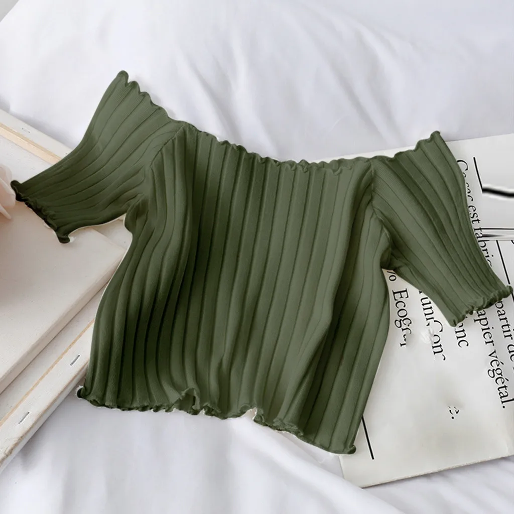 Женские летние простые рубашки 25 #, блузка, топы с квадратным вырезом, вязаная блузка, топы в полоску с оборками на Подоле и коротким рукавом, женские футболки, женская одежда