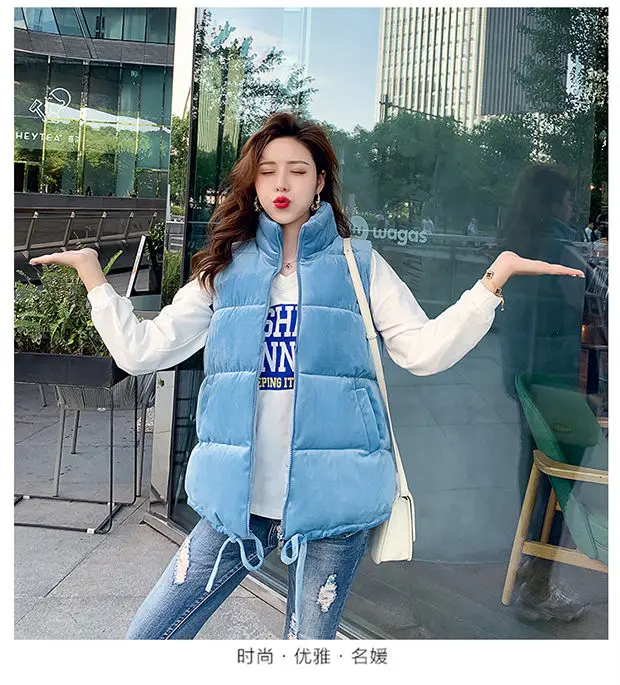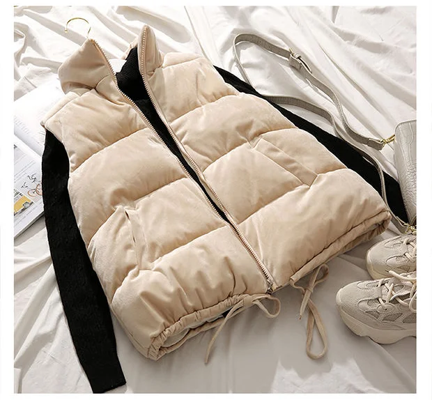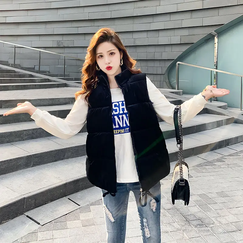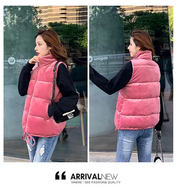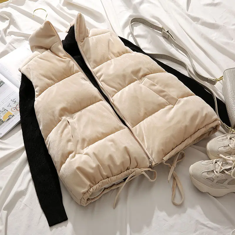 Новинка, Женский Золотой бархатный жилет, осенняя теплая пуховая ку...