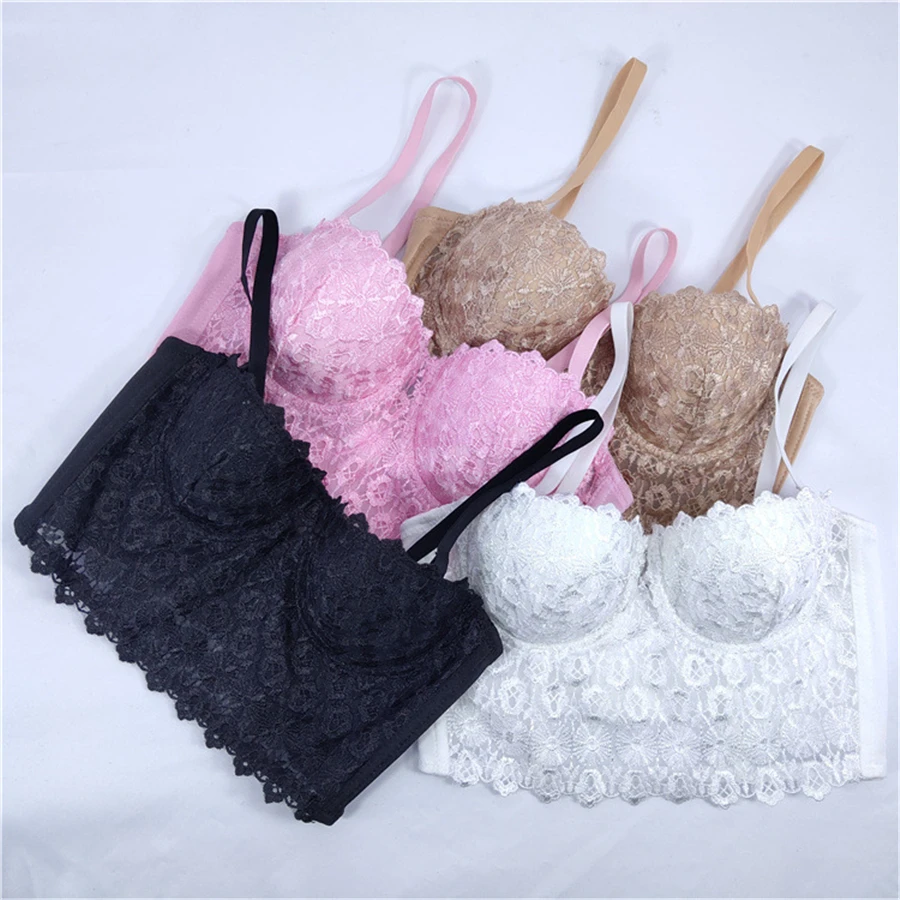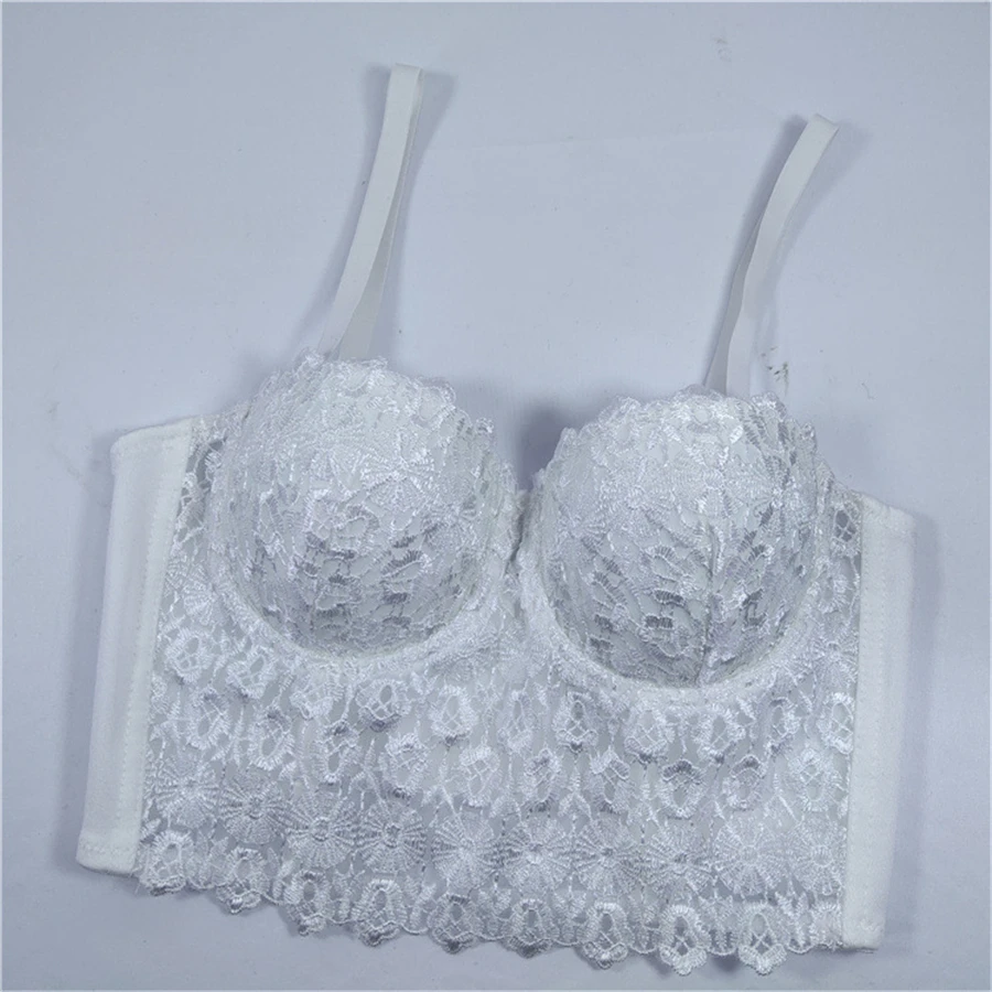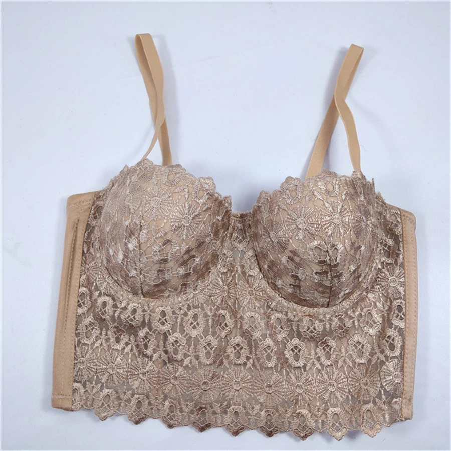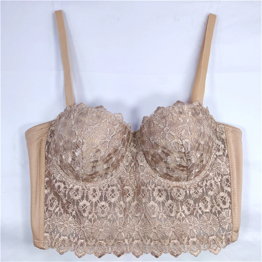 Топ женский кружевной с чашками, пикантный Укороченный бюстгальтер с вышивкой, укороченный топ для ночного клуба вечерние НКИ, укороченный топ с чашками пуш-ап, лифчик со встроенным бюстгальтером