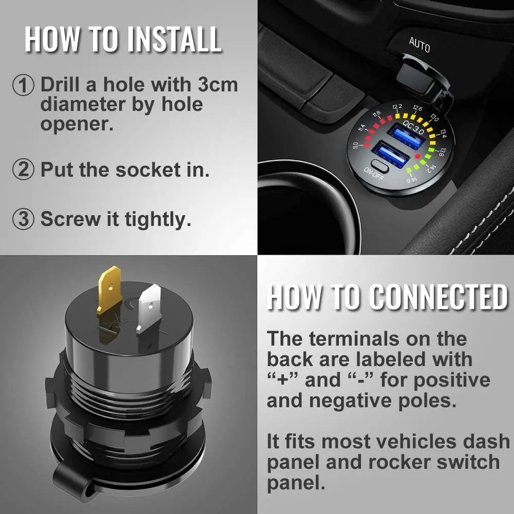 Автомобильная usb-розетка встроена в ручной переключатель вкл./выкл. Для управления питанием, который может экономить энергию и продлить срок службы продукта и устройств. Он экономит электричество и не потребляет энергию при выключении.