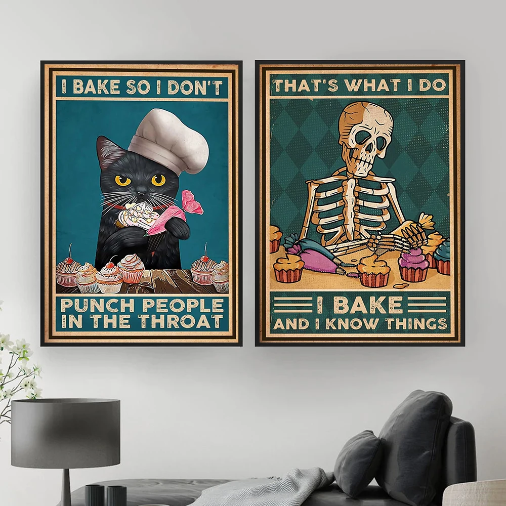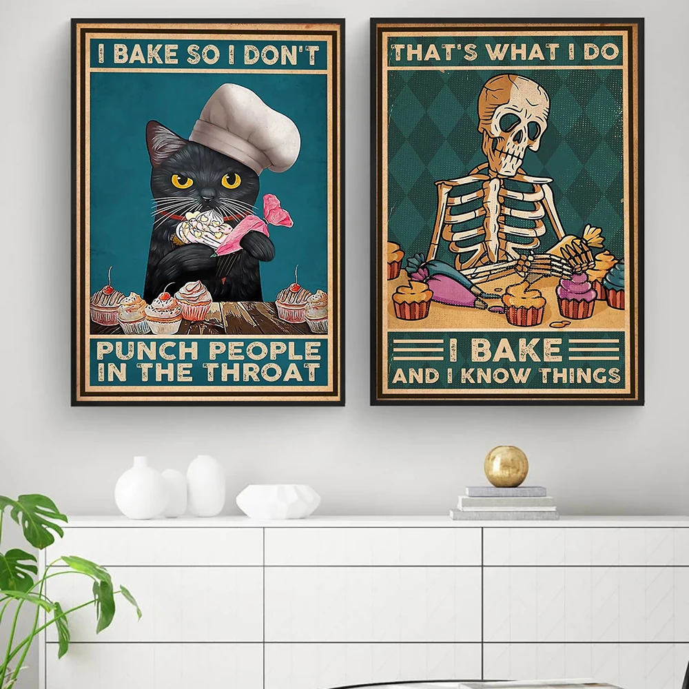 Винтажный Черный кот постер с изображением черепа я запекаю, чтобы не бить людей в горло, Картина на холсте, настенное художественное украшение для гостиной