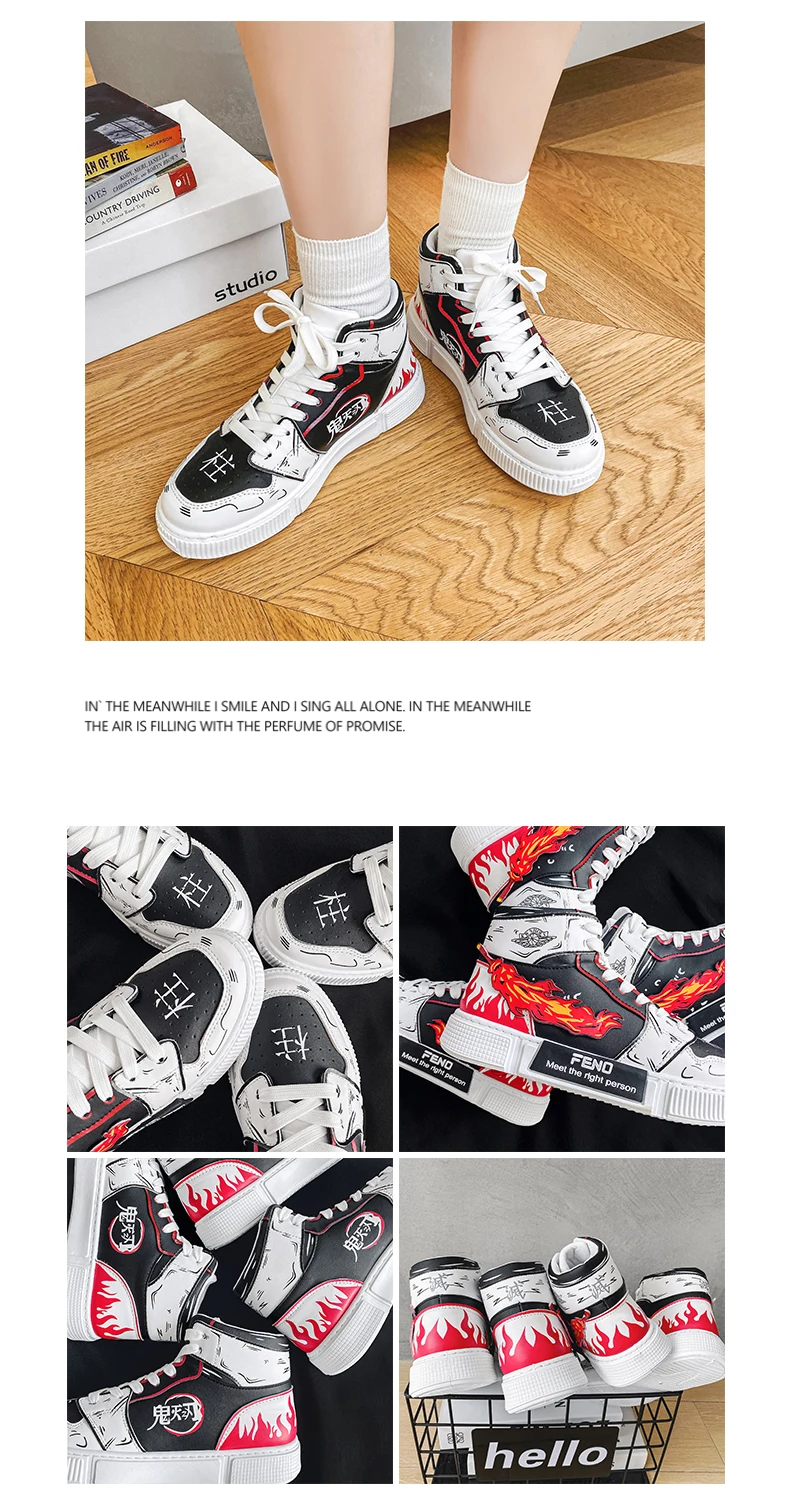 Кроссовки мужские высокие, Вулканизированная подошва, Повседневная модная обувь для скейтборда, высокие кеды с рисунком манга, граффити, аниме