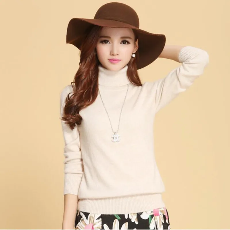 Осенне-зимний кашемировый вязаный свитер, Женский пуловер, женский свитер с высоким воротником, Женский базовый свитер, Теплые Топы H533