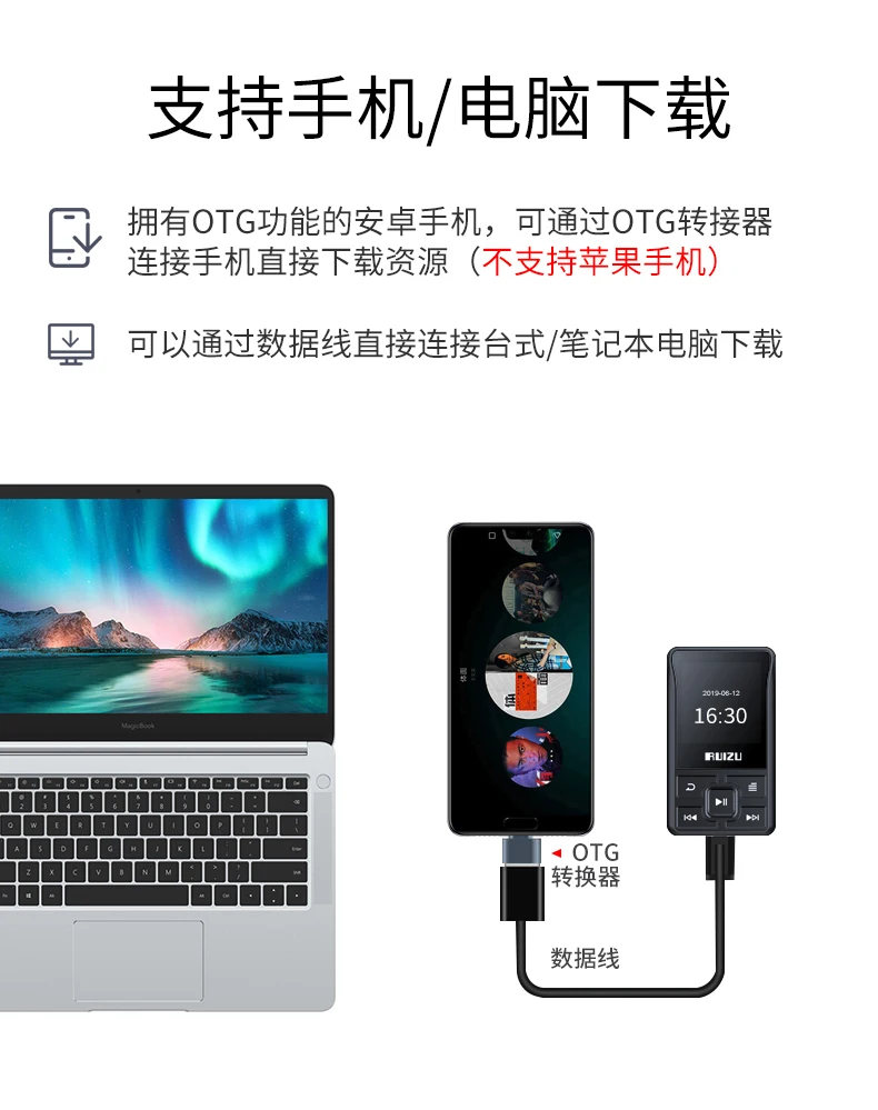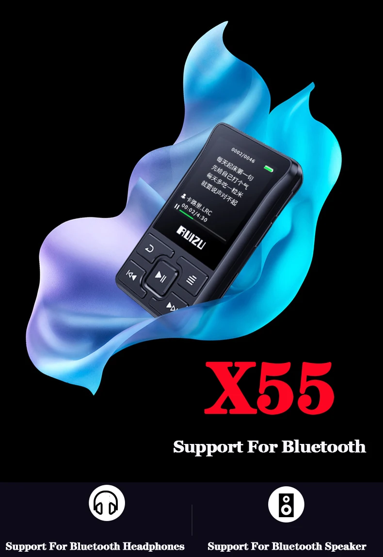 Номер моделиRuizu X55 Record Mini Lecteur Music Mp4 Mp3 Player Bluetooth FM Radio