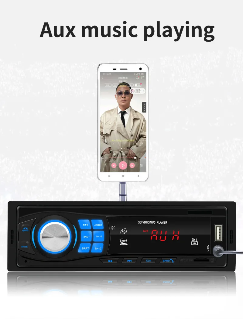 Автомагнитола 1 Din, Bluetooth, громкая связь, стерео, In-dash, FM, Aux вход, Mp3, USB, WMA, AUX в FM, Автомобильный плеер, Авторадио, mp3-динамик