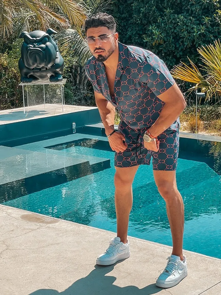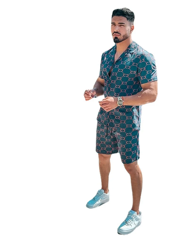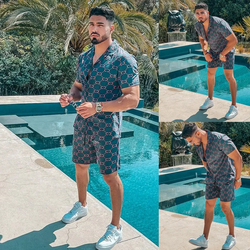 Лето 2021, пляжный костюм с принтом и коротким рукавом, Мужская одежда для отпуска в гавайском стиле, комплект из двух предметов, рубашка и шорты для загара, уличная одежда