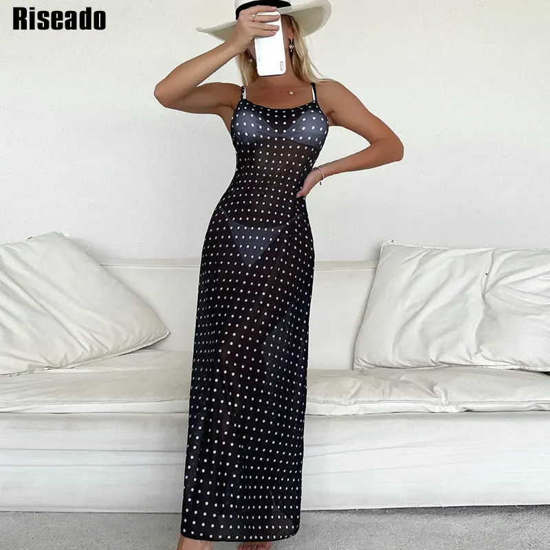 Riseado, пляжные платья в горошек, сетчатые купальники, женские купальники, Длинная пляжная туника, новые купальники, сексуальный купальный костюм для женщин