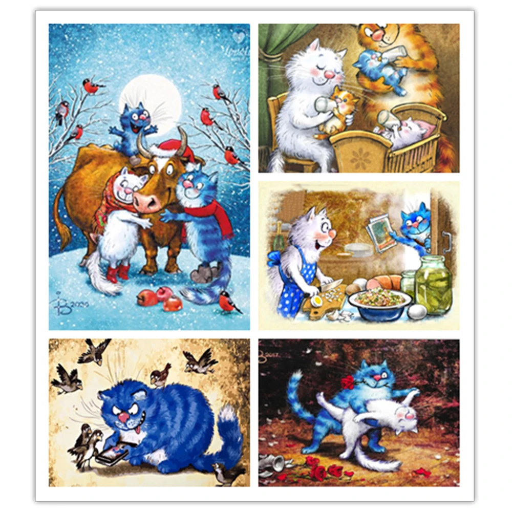 Квадратныйкруглый алмаз 5D DIY алмазная живопись "мультяшный синий кот" 3D вышивка крестиком Мозаика украшение дома подарок