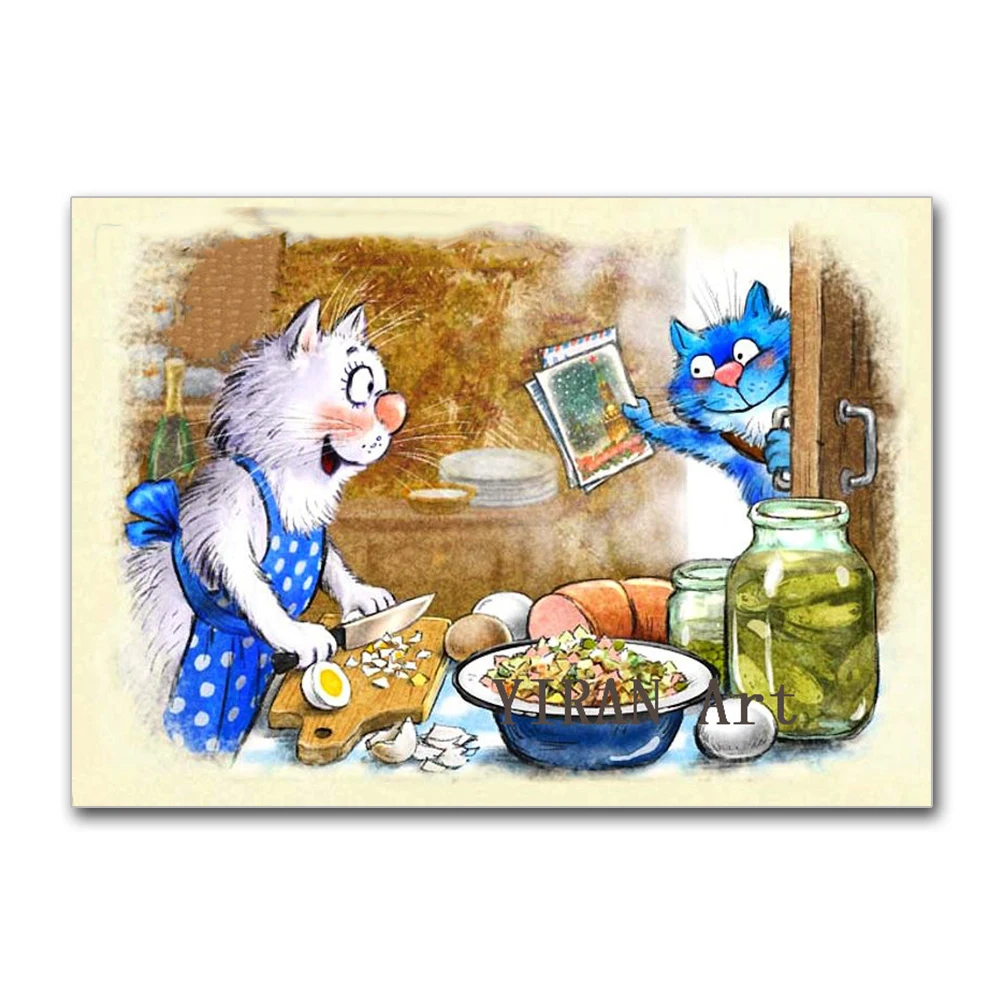 Алмазная 5D живопись сделай сам, пейзаж с синим котом, полная выкладка, мозаика с рисунком животных, вышивка крестиком, домашний декор, картина