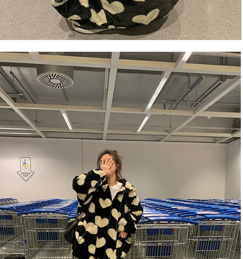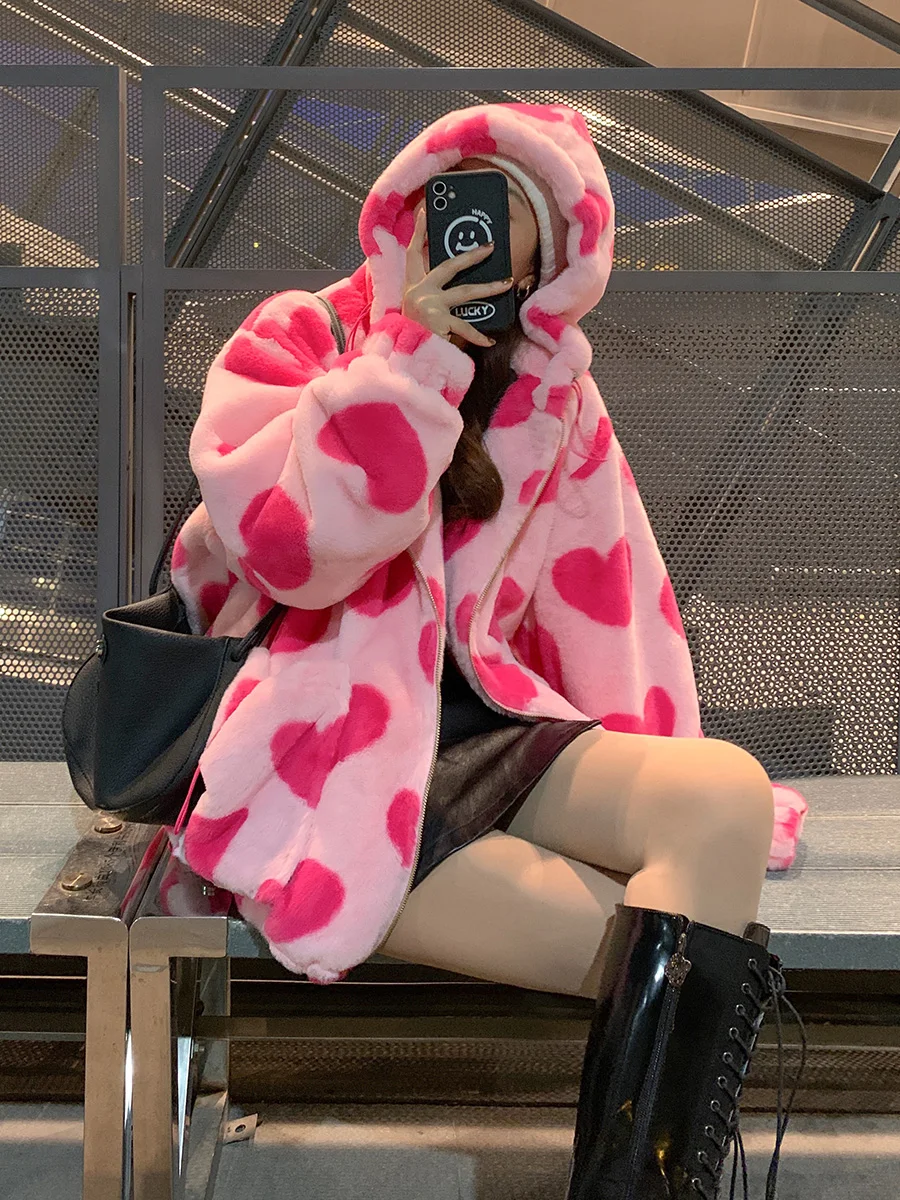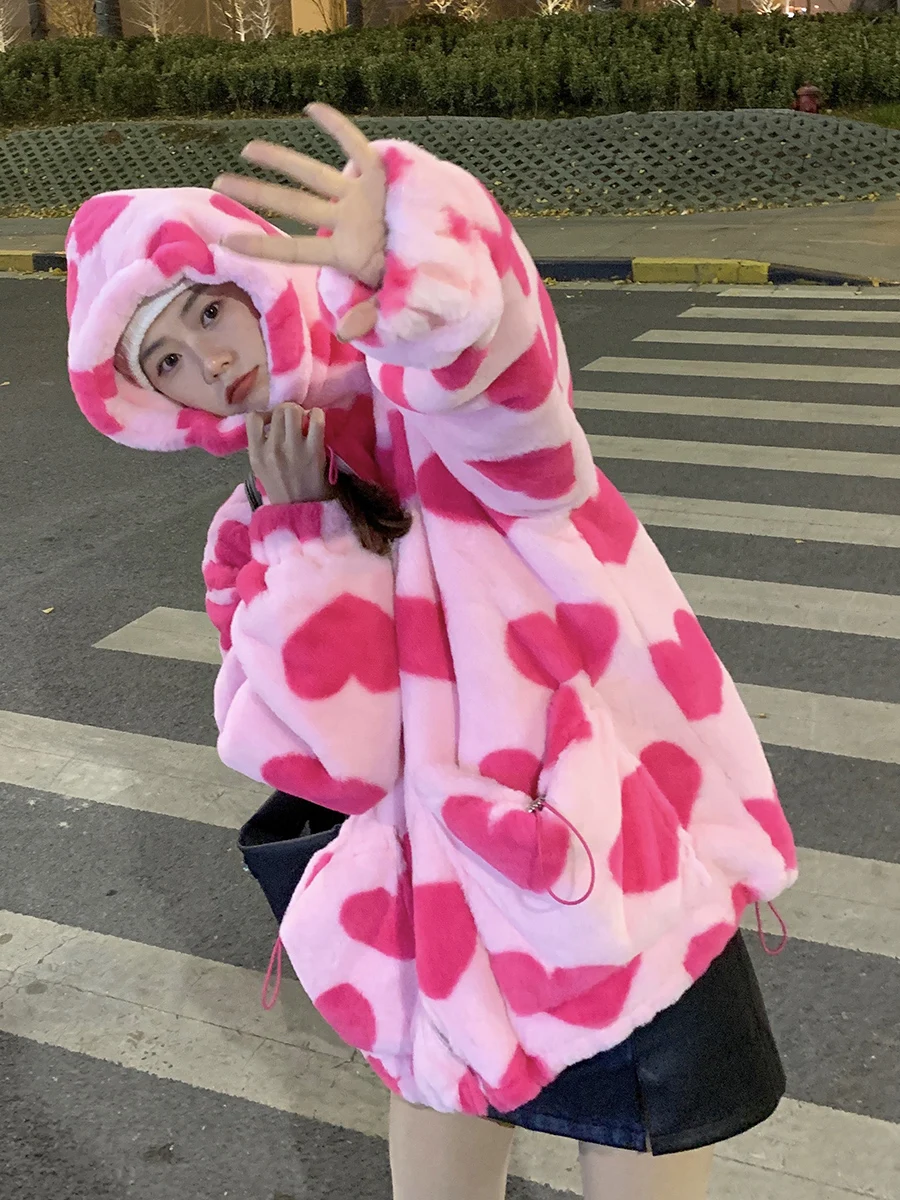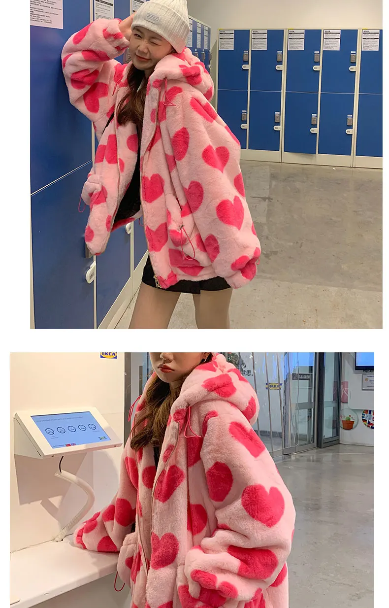 Женская плюшевая куртка y2k в стиле Харадзюку с принтом в виде серд...
