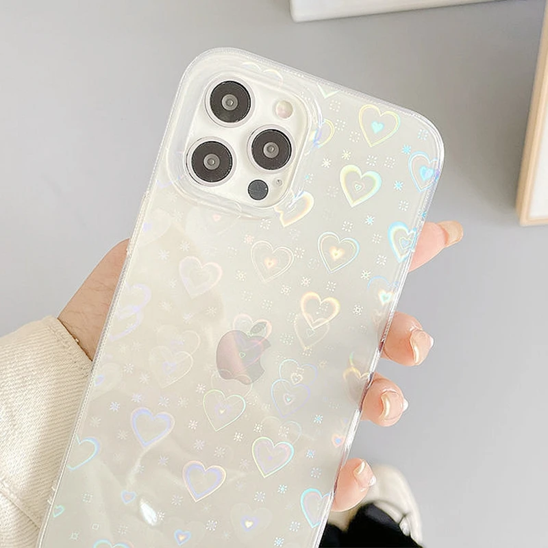Голографический чехол с милым сердцем для телефона Iphone 11 12 13 ...