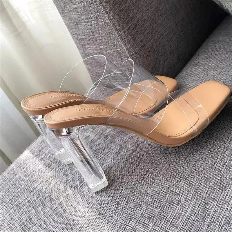 Летние женские туфли-лодочки 9 см, сексуальные сандалии-Желе, тапочки, открытый квадратный носок, высокий каблук, женские прозрачные тапочки, обувь на каблуке, прозрачные сандалии