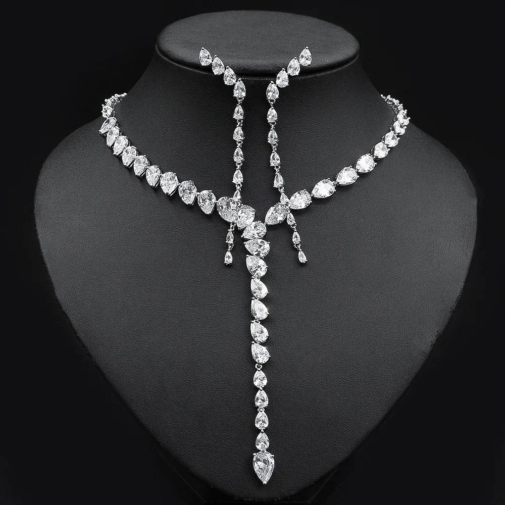 Европейская и американская установка Простые двухцветные сплайсинга капли воды в форме сердца циркон ожерелье серьги свадебный комплект ювелирных изделий