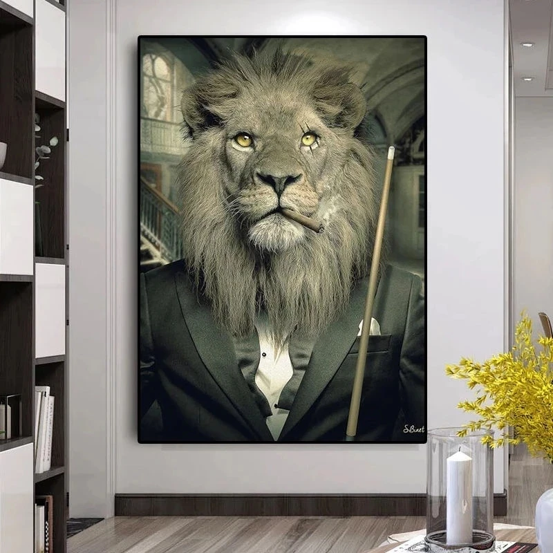 Мафия, львы, курение, холст, картина на стену, художественные плакаты, принты, настенные картины, картины для гостиной, домашний декор для стен