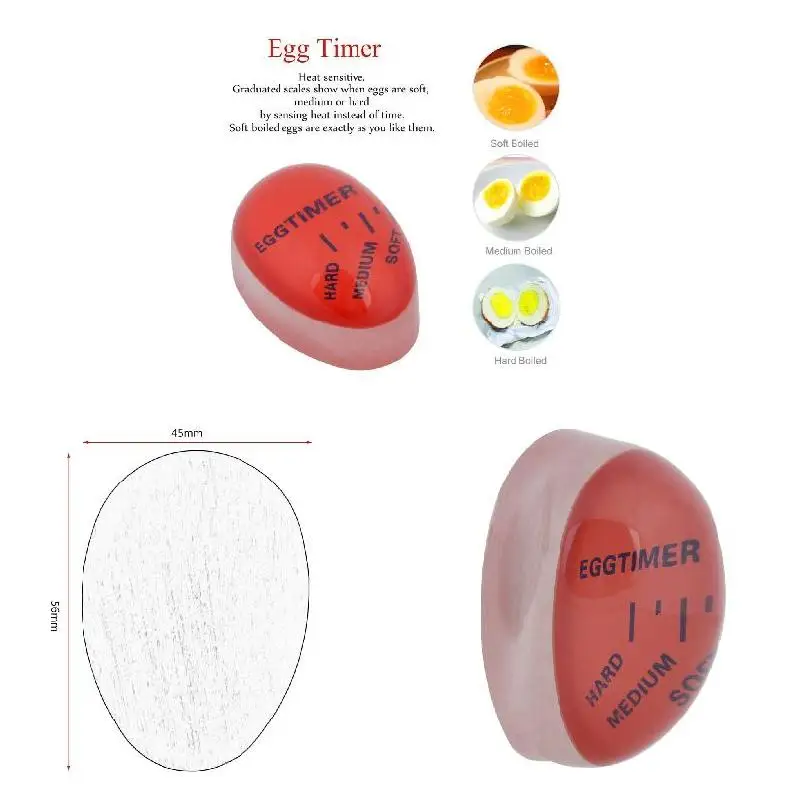 Особенности:Термочувствительный.Градуированные весы показывают, когда яйца мягкие, средние или твердые, воспринимая тепло вместо времени.Мягкие вареные яйца точно такие же, как они вам нравятся.Твердые вареные яйца больше не готовятся, поэтому они имеют идеально окрашенные желтки и гладкую текстуру.Таймер Яйца Можно охладить на прилавке.Не погружайте таймер Яйца в холодную воду.Спецификация:Тип: таймерыОсобенность: экологически чистыйФиксированное время: ≤1 часаСертификация: CEМатериал: смолаТип таймера: таймеры с циферблатомДиаметр: 56 мм * 40 ммЦвет: красный