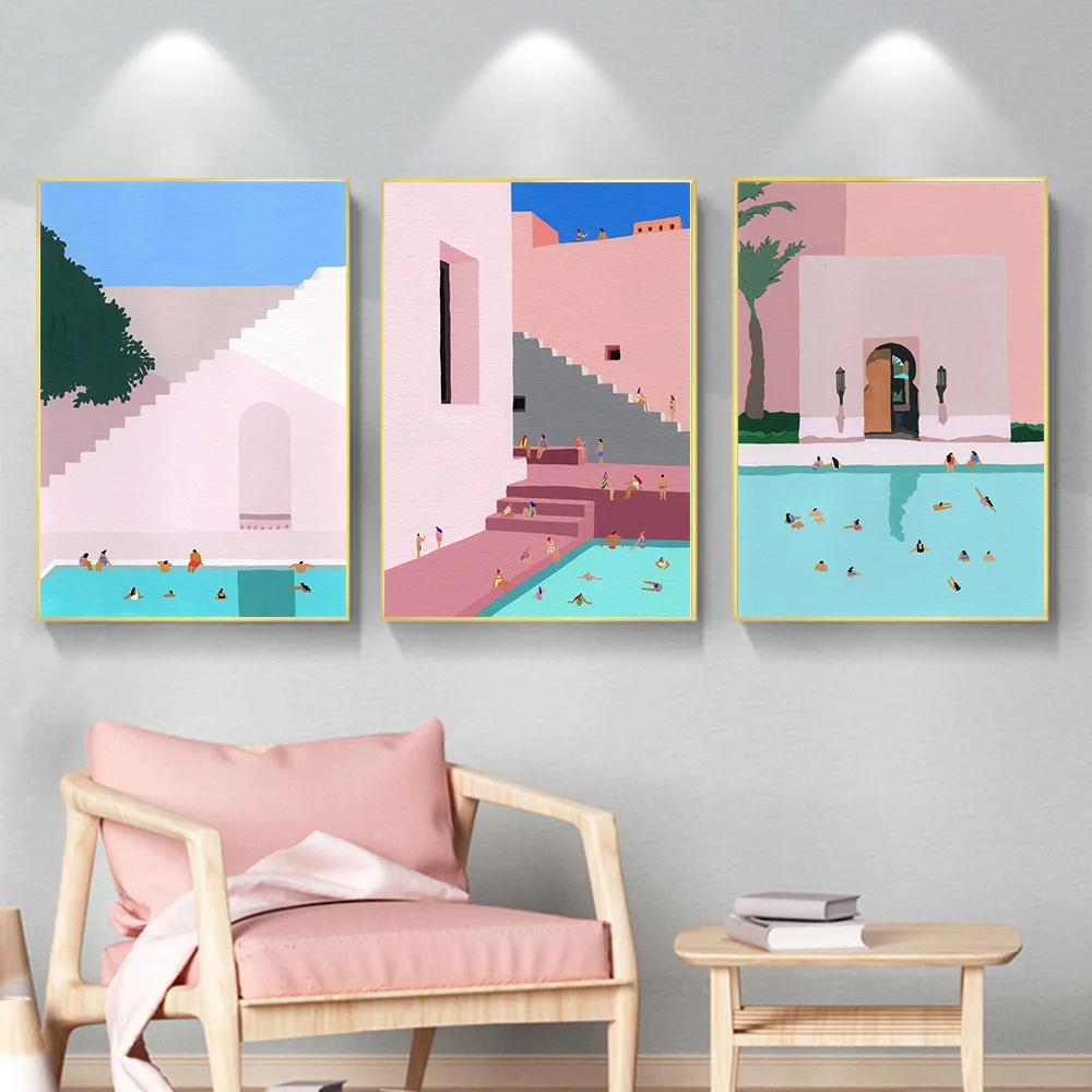 Настенная картина с изображением исламской архитектуры, плакат плавательного бассейна, марокканская АРКА, ворота, Современная Картина на холсте для декора гостиной