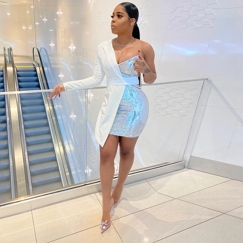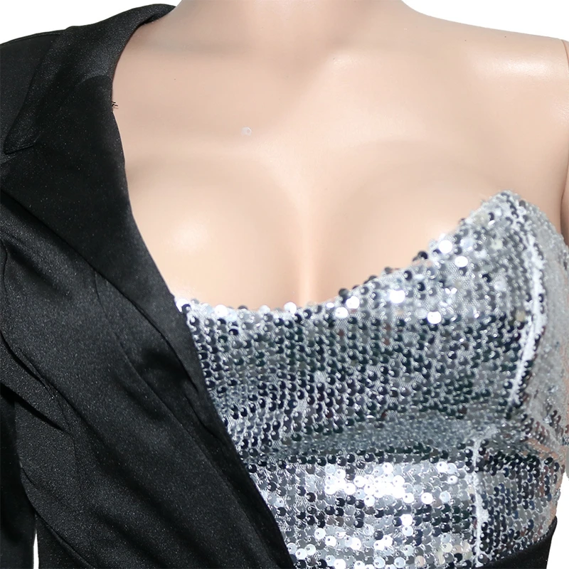 Блейзер Женский, на одно плечо, с длинным рукавом, с блестками
