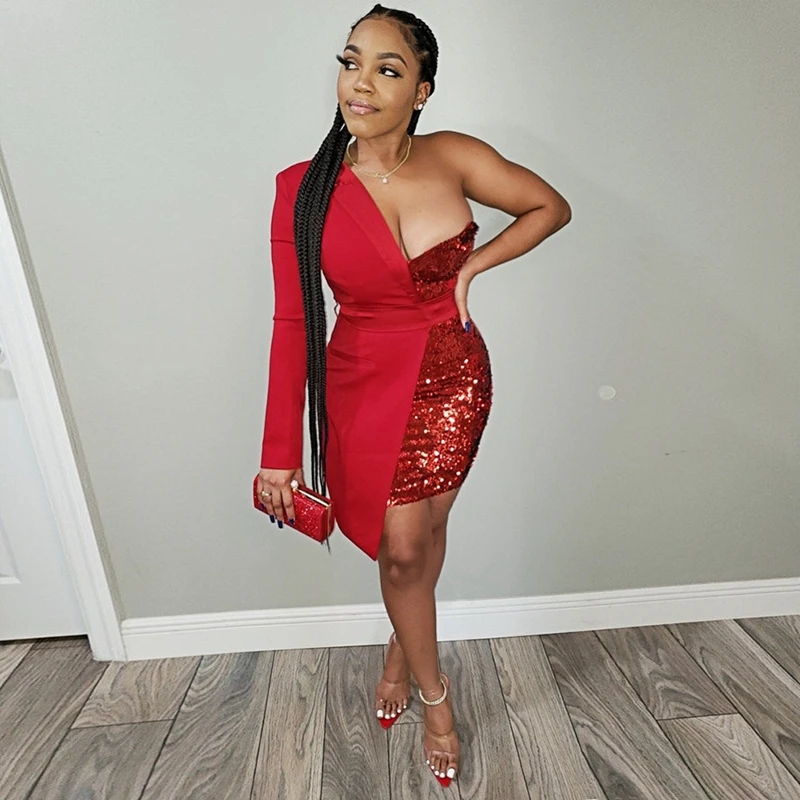 Рождественский Блейзер Adogirl на одно плечо, мини-платье для женщи...