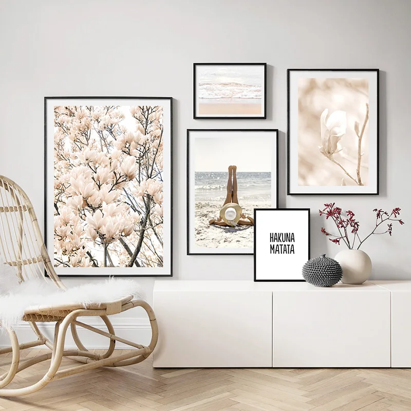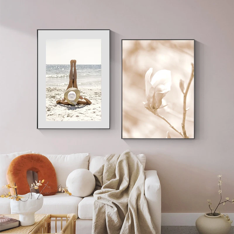 Красота, песчаный пляж, цветы, Чайка, скандинавский пейзаж, Декор, холст, живопись, настенное искусство, фотографии для гостиной, спальни, украшение для дома