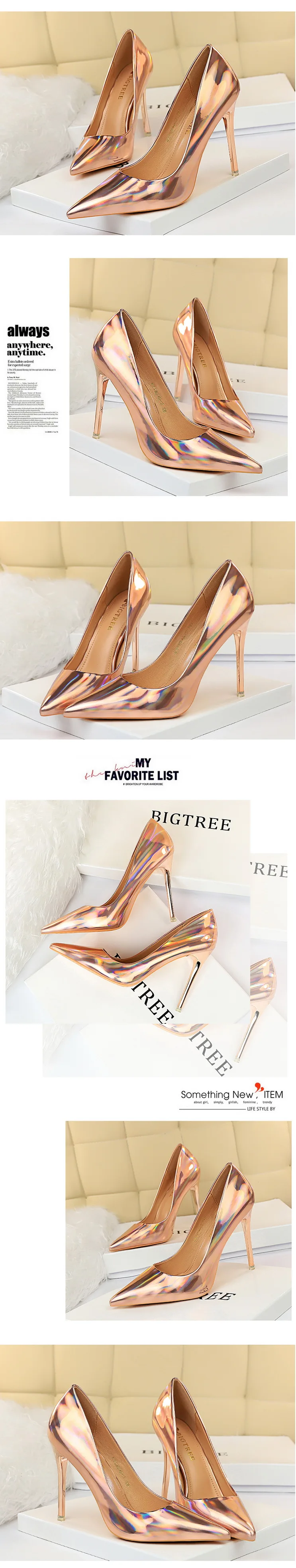 Женские туфли-лодочки на шпильке, блестящие туфли на высоком каблук...