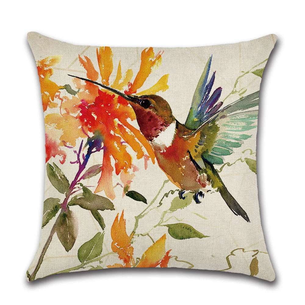 Акварельная искусственная наволочка, наволочка в американском сельском стиле, ручная роспись, птицы, цветы, льняная наволочка для дивана, украшение автомобиля