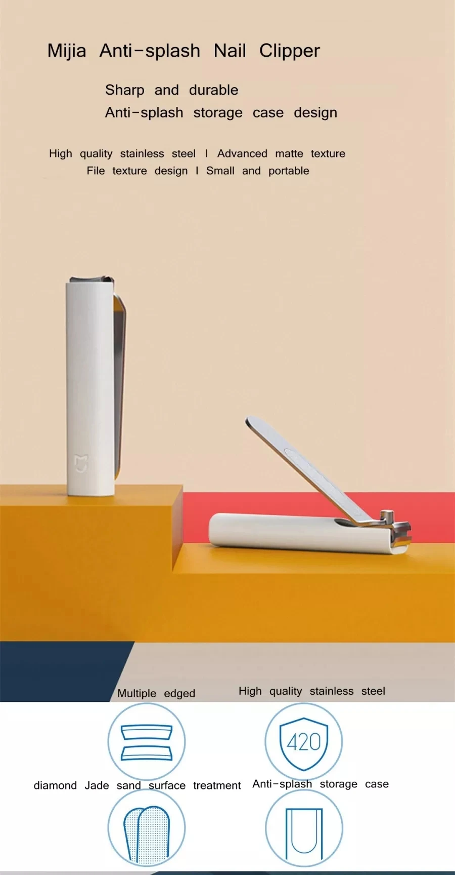 Кусачки для ногтей из нержавеющей стали Xiaomi Mijia с крышкой от брызг триммер для педикюра кусачки для ногтей профессиональная пилка