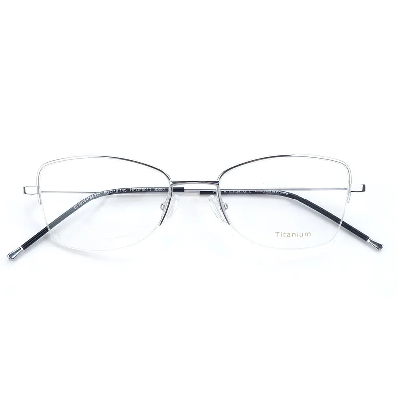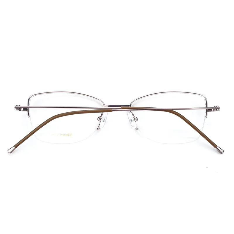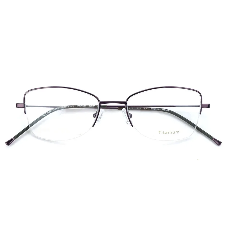 Женские оправы для очков от близорукости из чистого титана, суперлегкие, с половинчатой оправой, серебристыефиолетовыецвета шампанскогокофейные