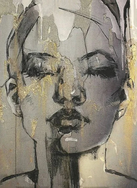 Современные женские картины на холсте, черное лицо, покрытое золото...