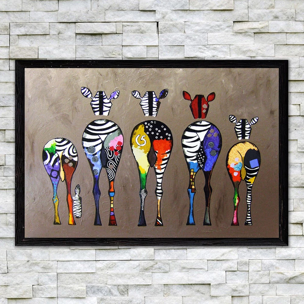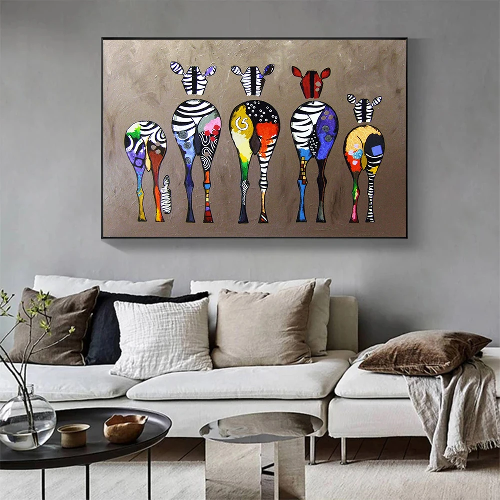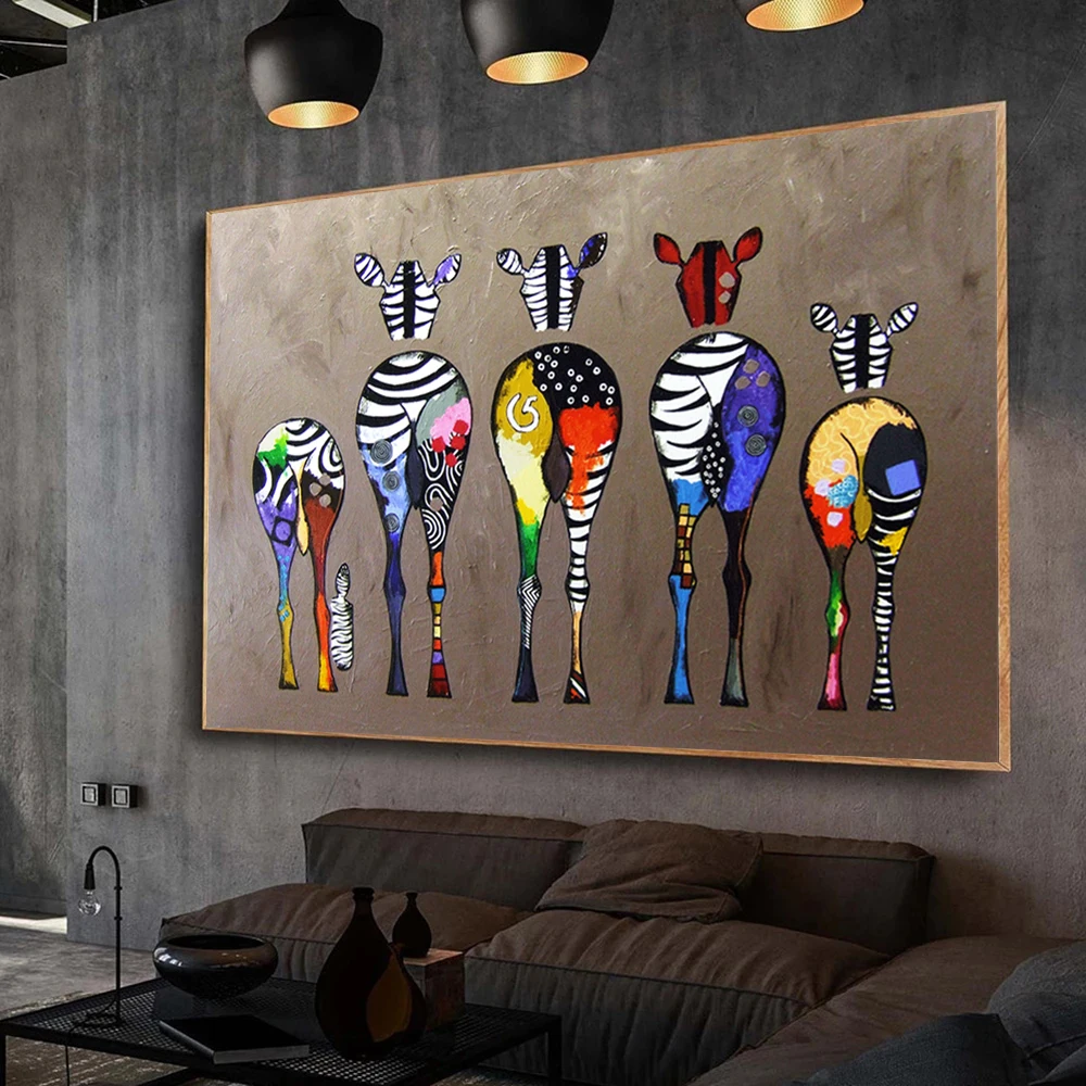 Мультяшные красочные полосатые стены, художественные холсты, абстрактные животные, настенная живопись, Современная гостиная, украшение для дома, плакаты, картины