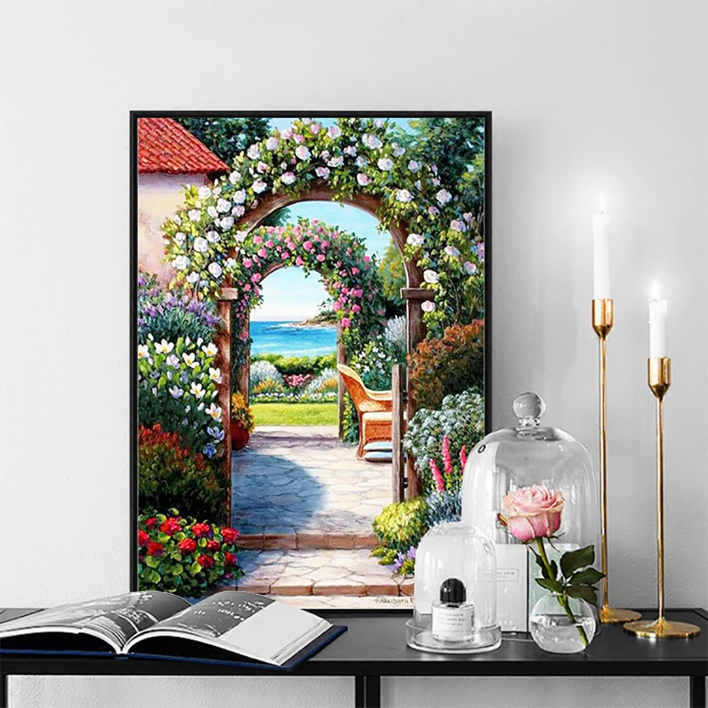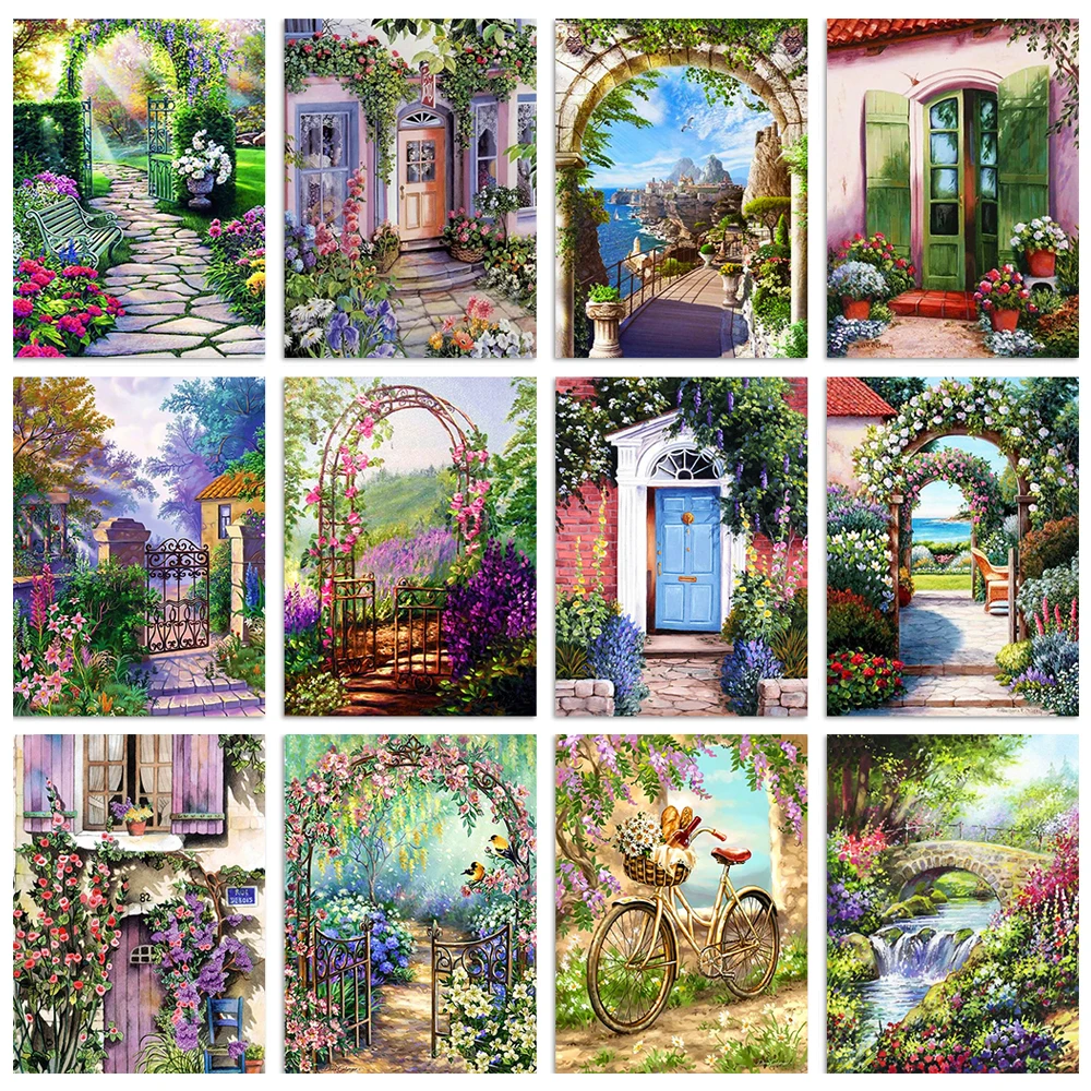 5D алмазная живопись Весна сад Арка искусство идиллическая полная квадратнаяКруглая Мозаика вышивка домашний декор декоративная настенная живопись