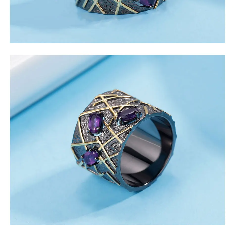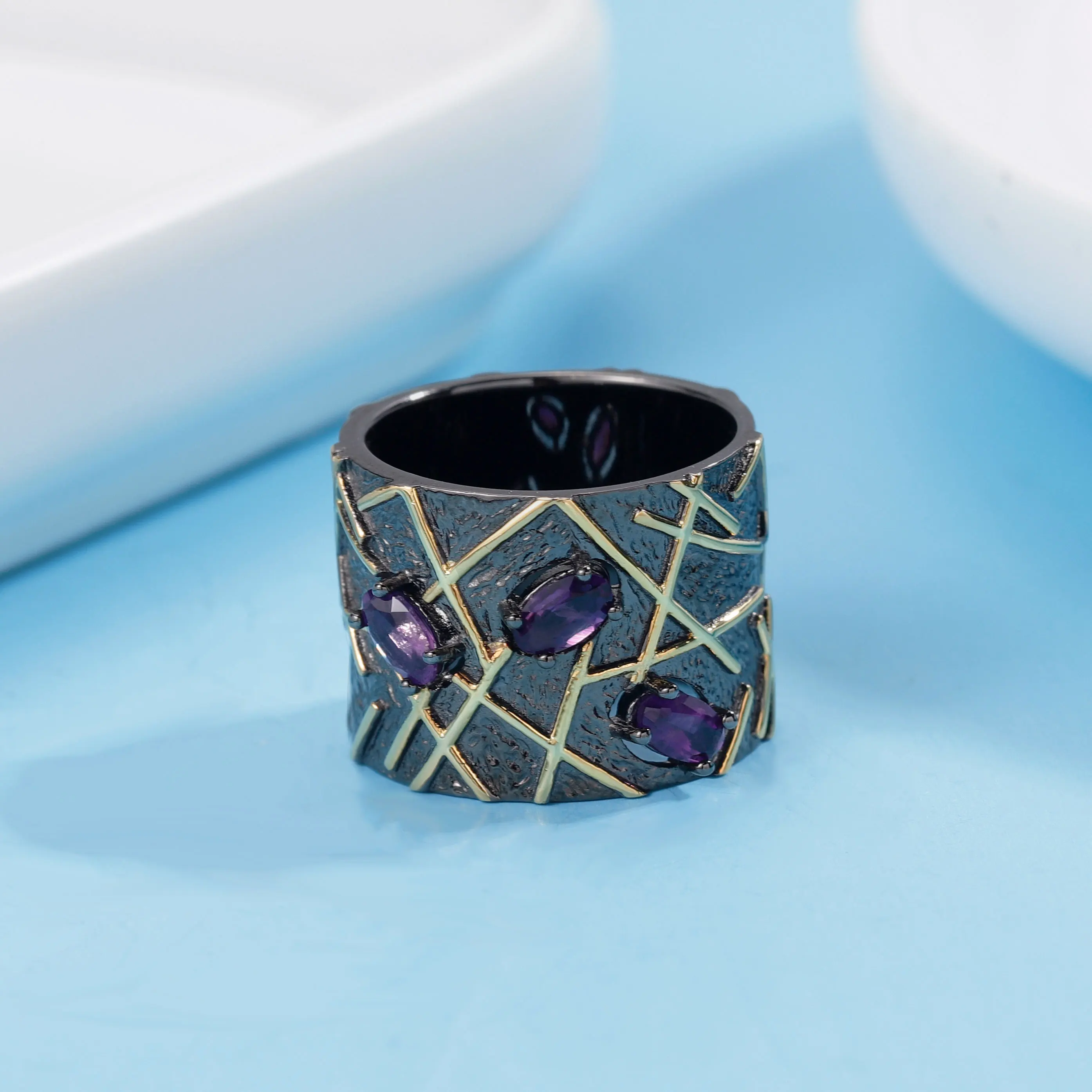Женское кольцо из серебра 925 пробы с натуральным аметистом
