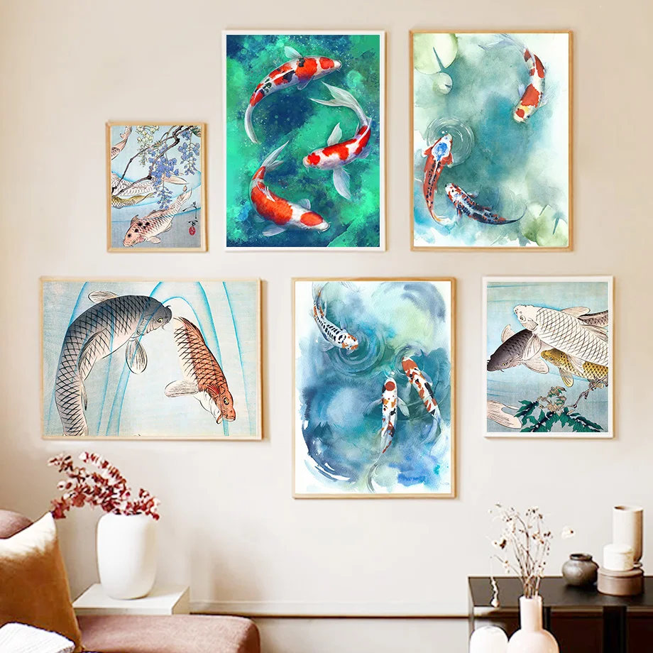 Фэн-шуй дзен карп кои рыбные рыбы настенная Картина на холсте скандинавские постеры и принты настенные картины для гостиной Бохо Декор для комнаты