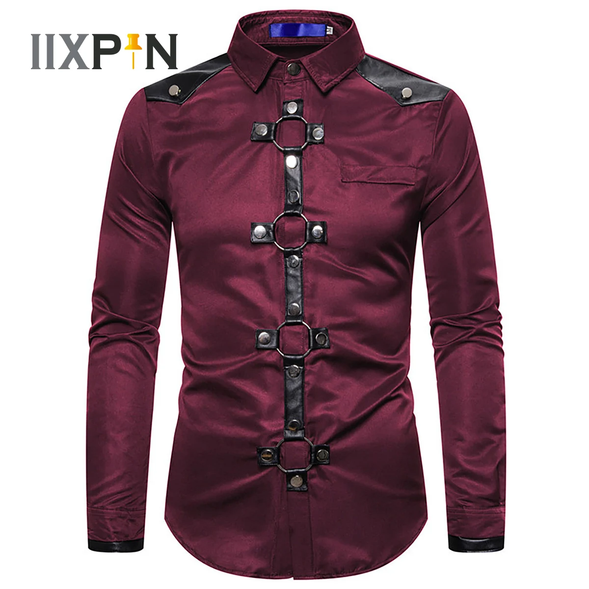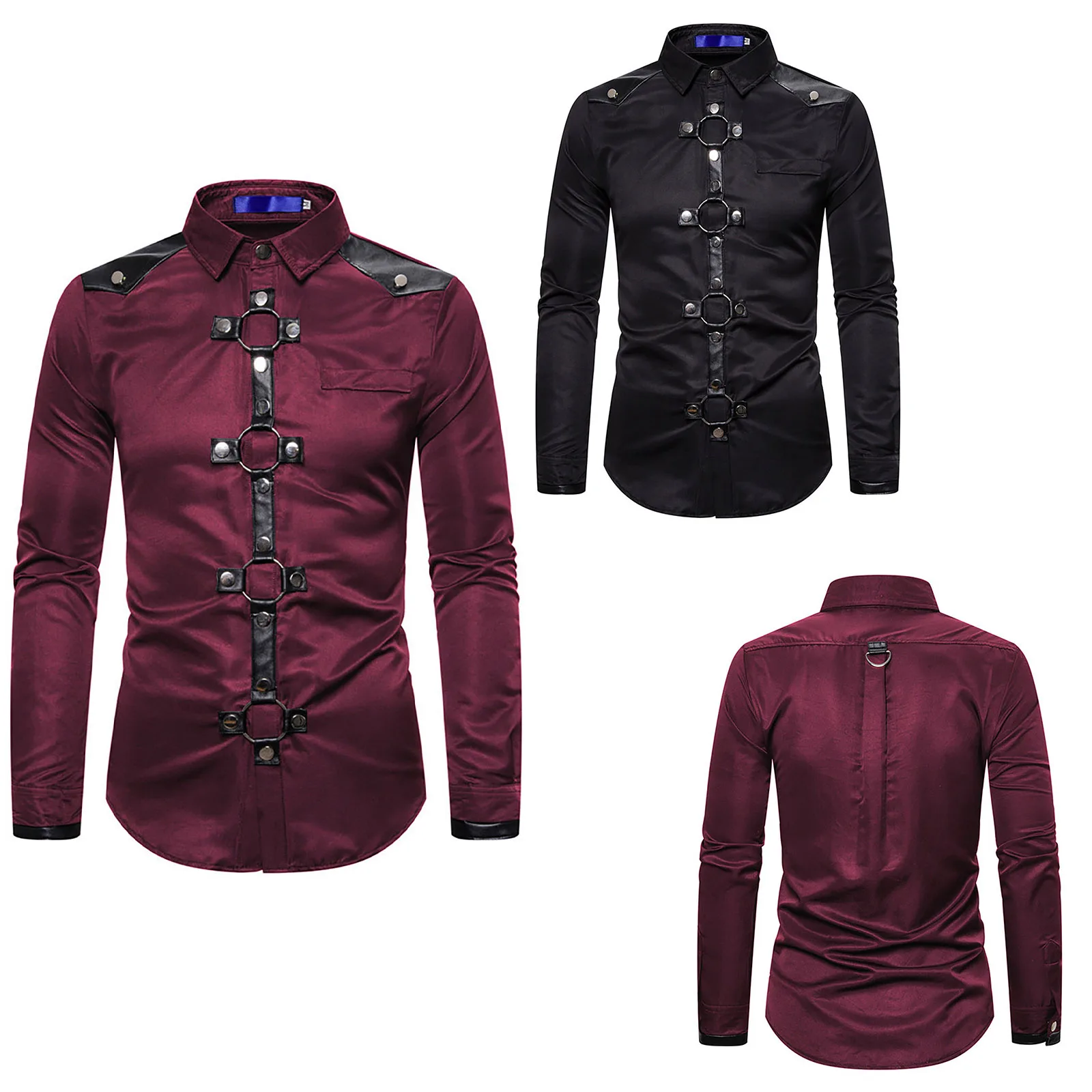 Готическое кольцо с круглым вырезом и заклепками; Рубашка с длинными рукавами; Клубная одежда; Рок-концертный костюм для сцены для мужчин.Изготовлено из мягкой ткани, дышащей, приятной для кожи, удобной на ощупь и в носке, позволяет вам чувствовать себя хорошо.Украшены круглым кольцом и заклепками спереди, отложным воротником, длинными рукавами, деталями из искусственной кожи в стиле пэчворк.Готическая рубашка может сочетаться с курткой, кожаными брюками, повседневными брюками, джинсами, расклешенными брюками и ювелирными изделиями.Идеально подходит для повседневного вида, вечерние, свидания, Клубные сценические шоу, музыкальный фестиваль, рок-концерты, ночной выход и т. Д.