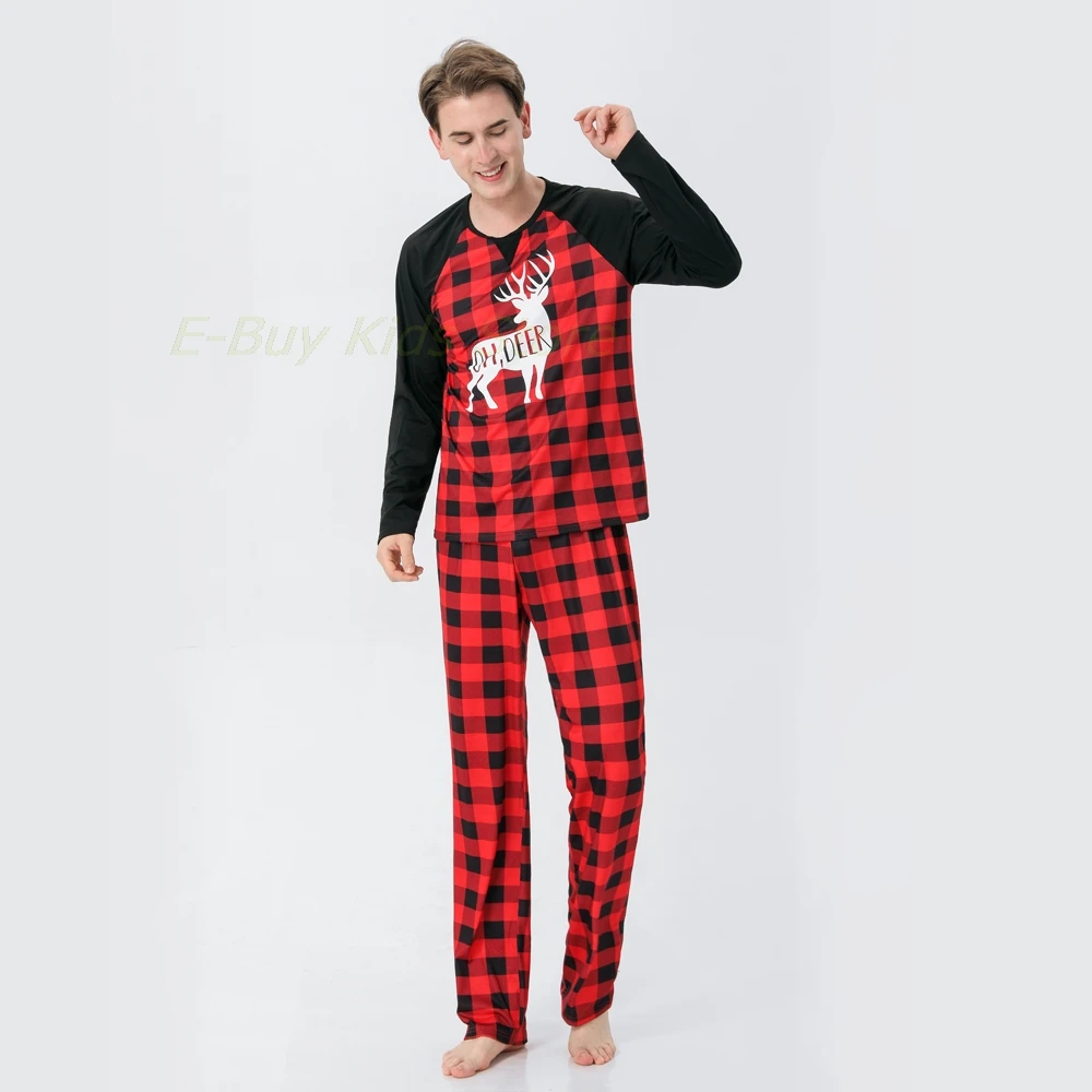 Пижама с рождественскими оленями, топ в клетку + штаны, Пижама для всей семьи, комплекты одежды для мамы и дочки, одежда для папы и девочки