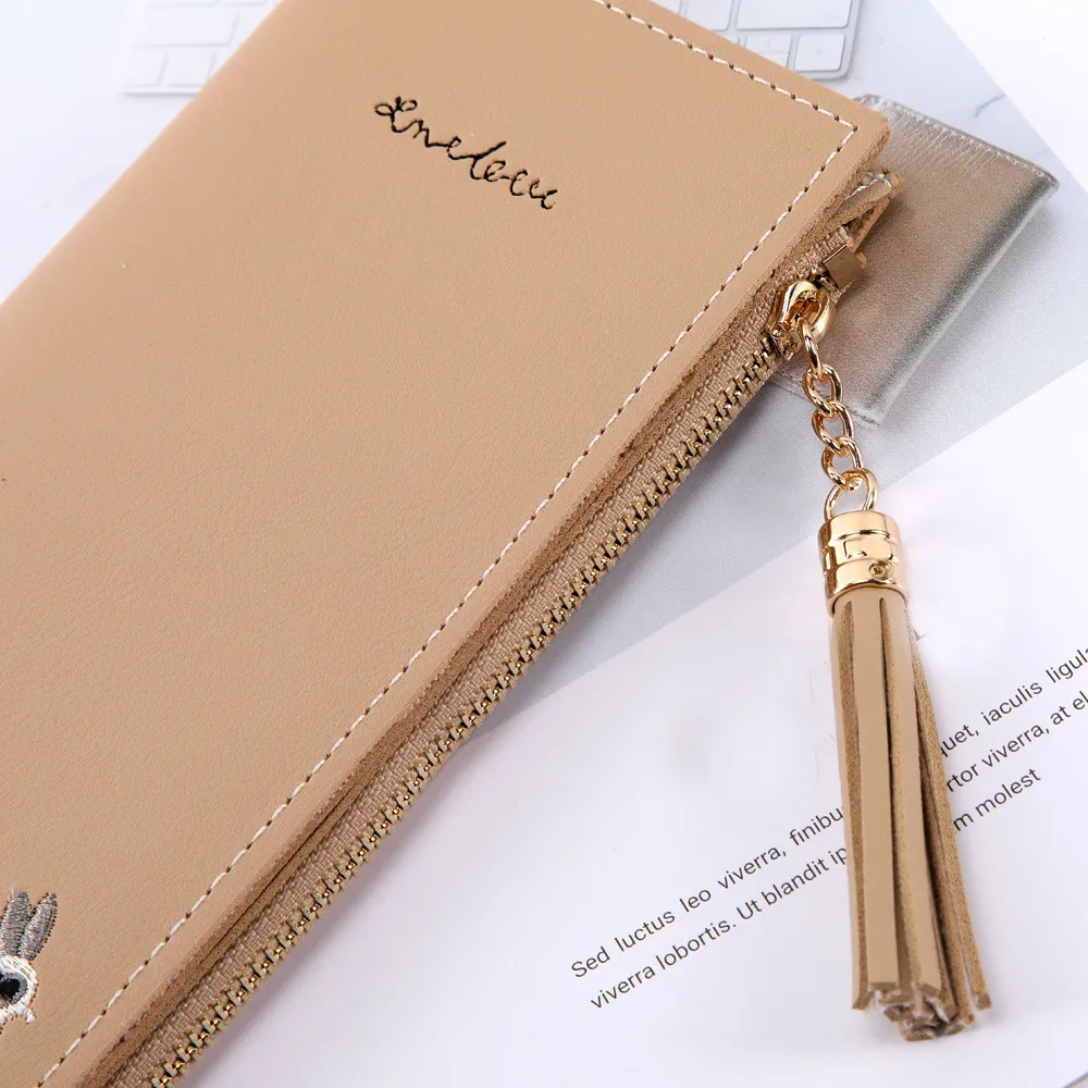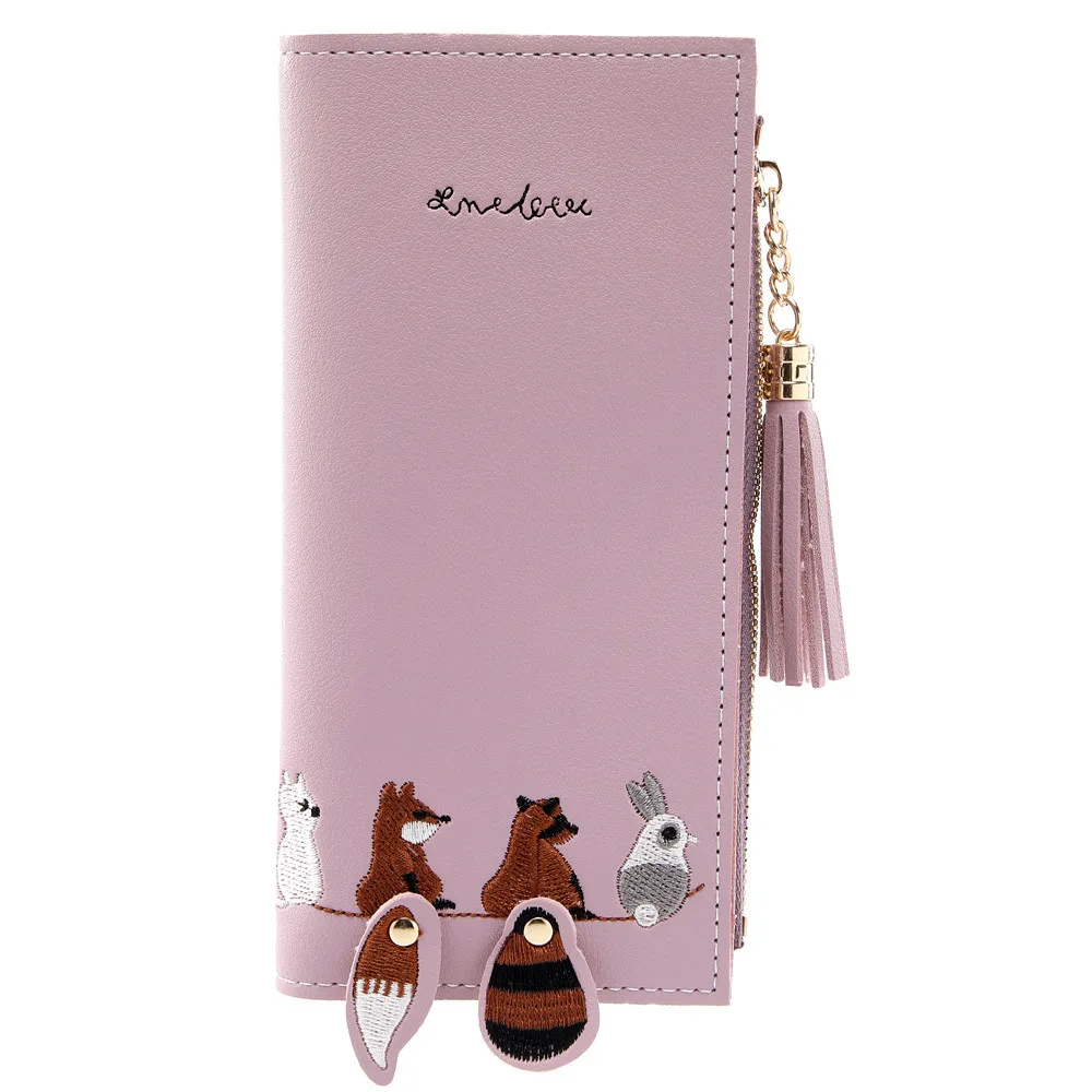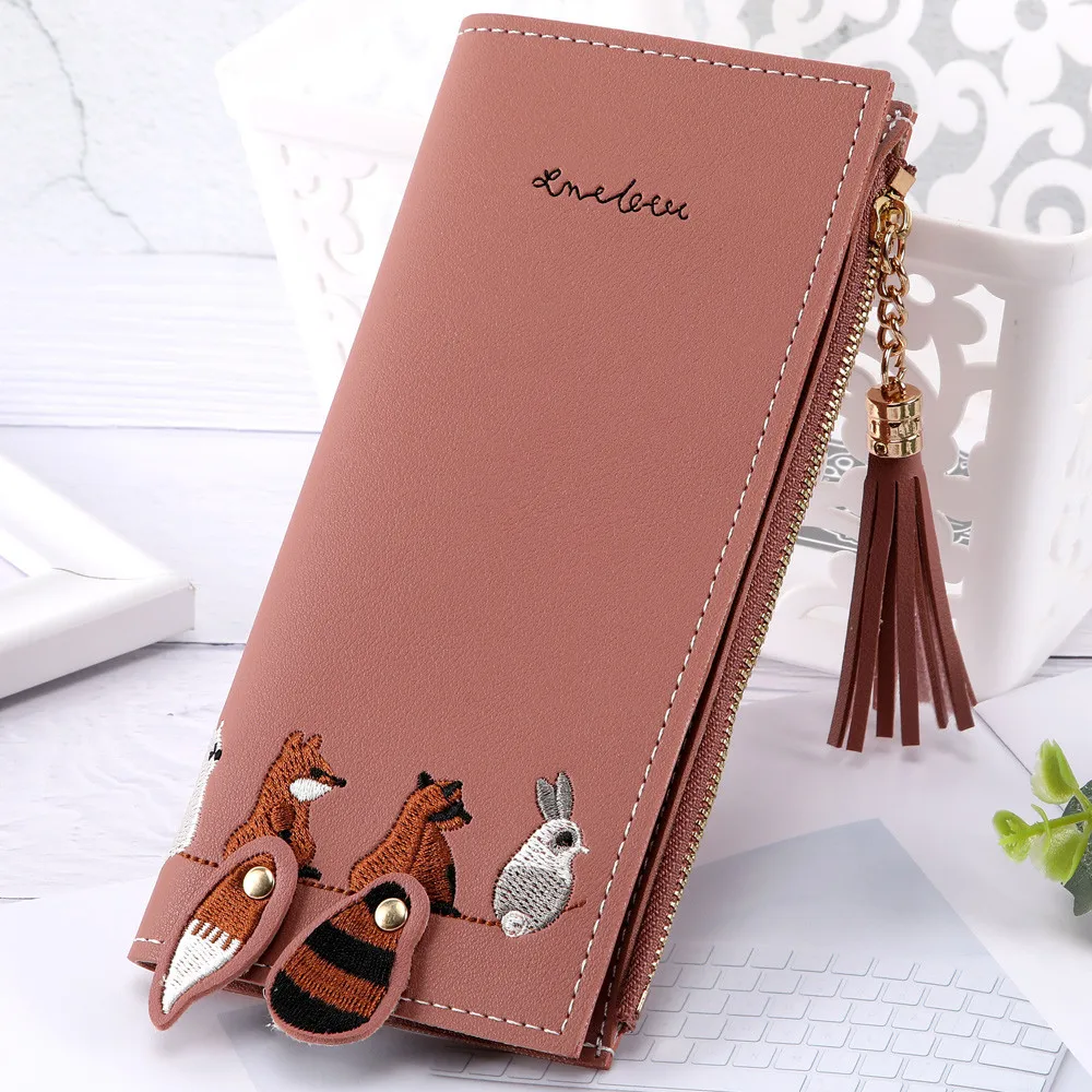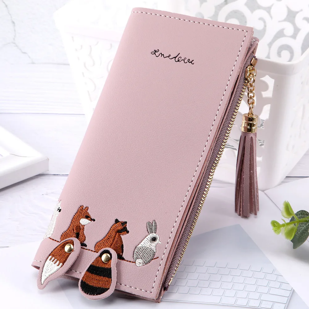 Модный женский длинный кошелек из искусственной кожи роскошный дизайн лиса кошка популярный кошелек с кисточкой Кошелек для монет Чехол для карт Дамская открытка тюк упаковка для кредитных карт